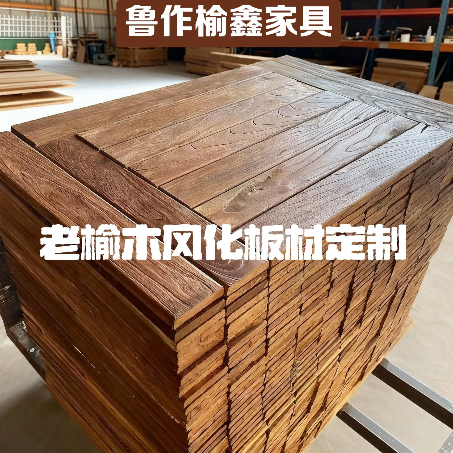 老榆木板材自然纹理风化木板复古民宿装修板做旧实木板楼梯踏步板