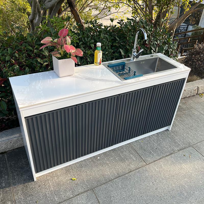 屋外キャビネット庭岛台全合金岩板シンク一体型キャビネット屋外洗面台コテージガーデン操作台
