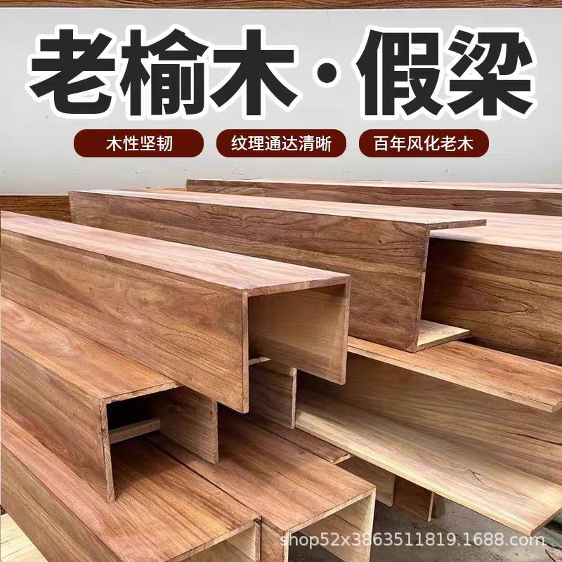 实木假梁榆木复古装饰假梁天花板吊顶装饰空心假房梁民宿装饰板材