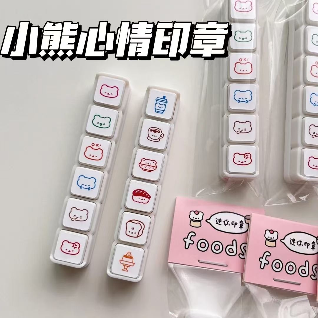 小紅書同項情緒動物打打六連印鑑ミニ手帳diy素材装飾創意印鑑
