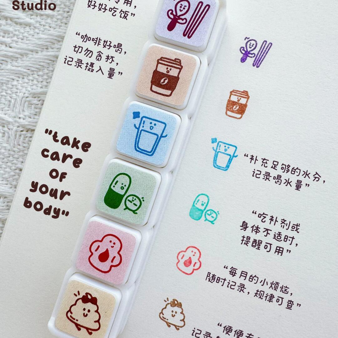 小红书同款卡通六联印章大合集手账装饰印章diy素材可爱实用笔记