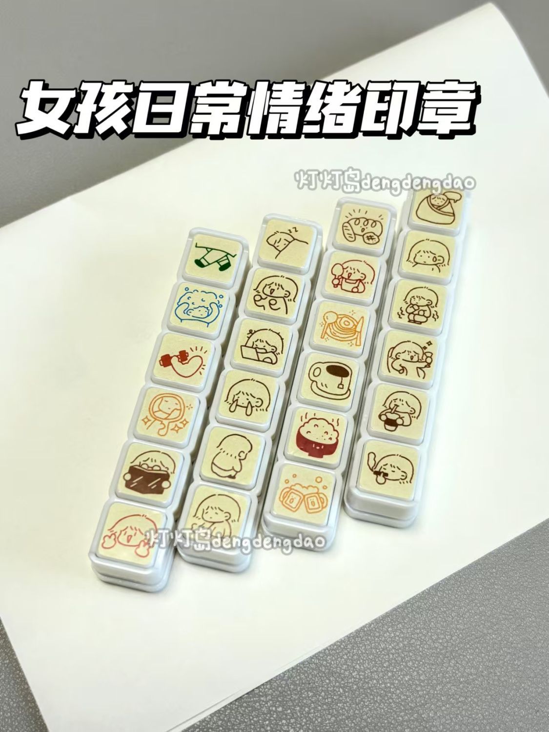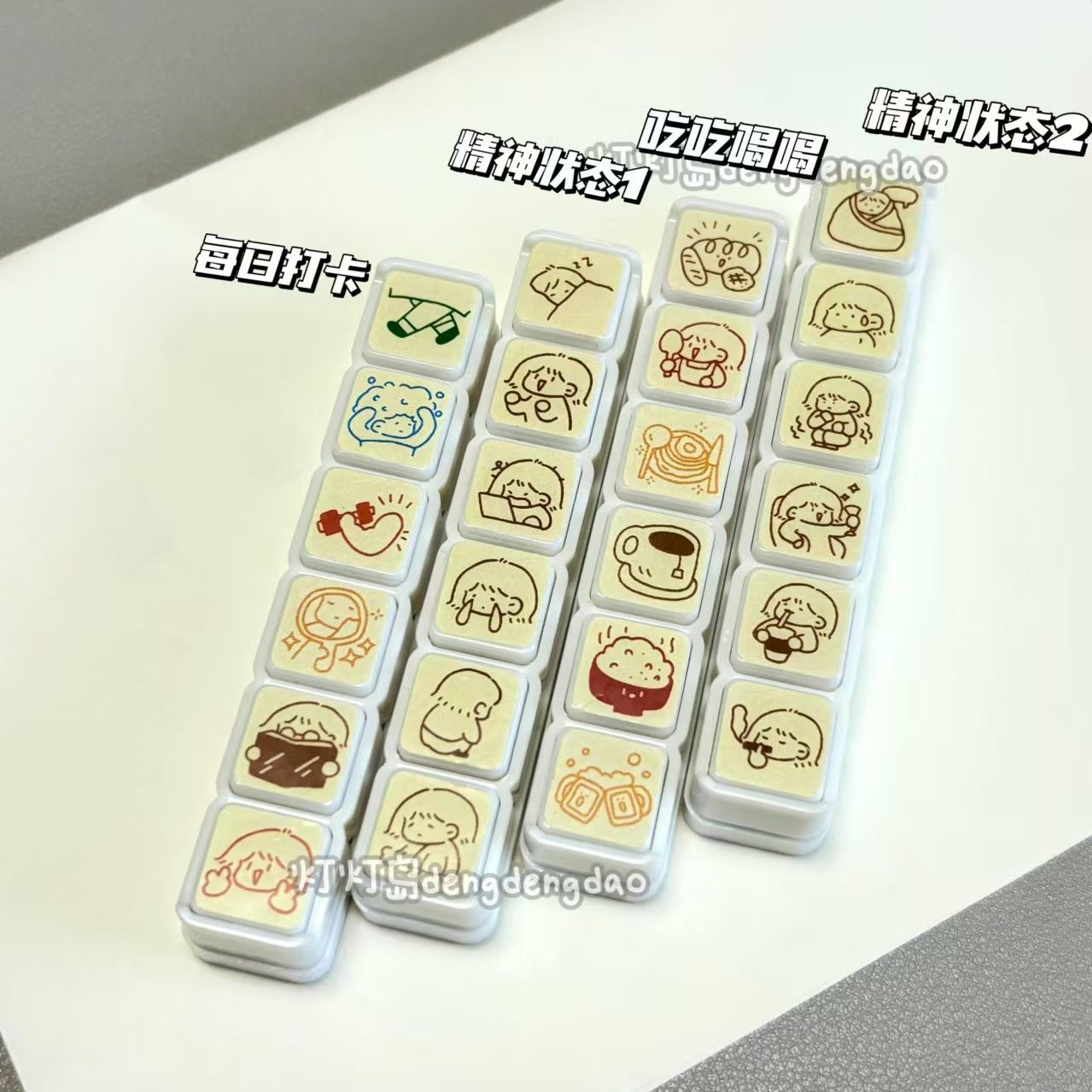 可爱表情包实用好心情坏心情六联印章按钮式可爱手账装饰素材盖印