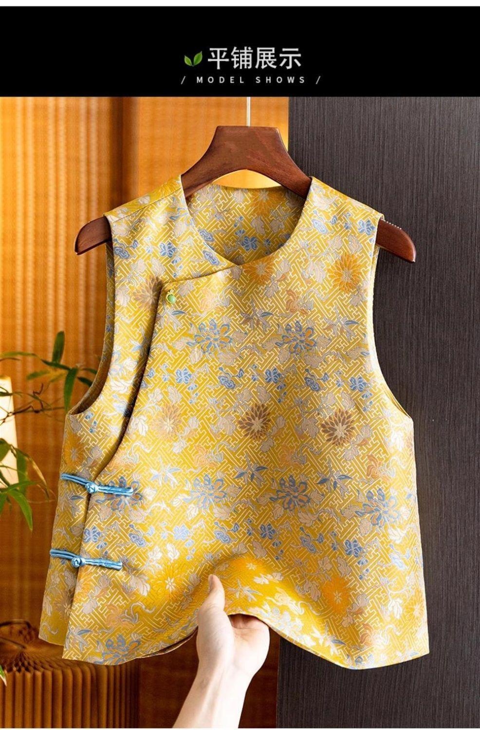春の国風馬甲織錦宝相花新中国式馬甲女中国風高級馬甲女2025年春