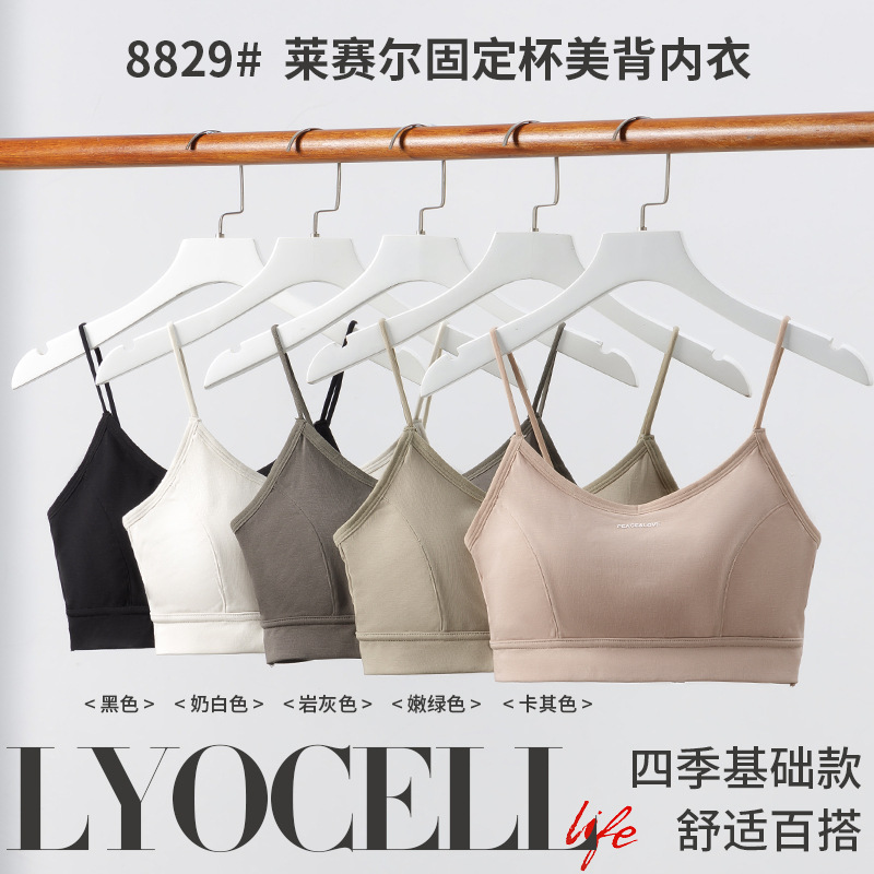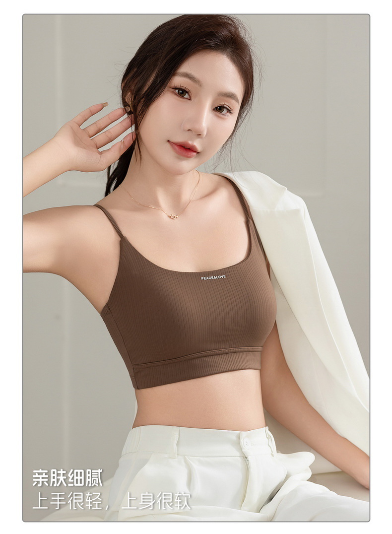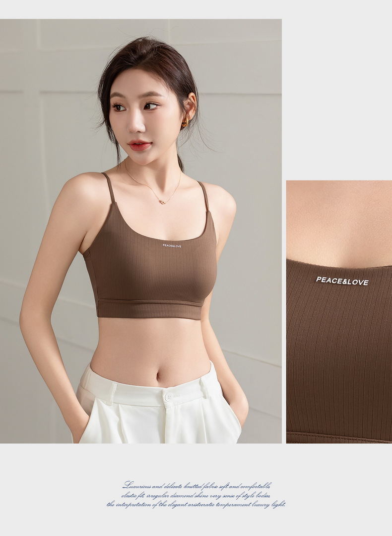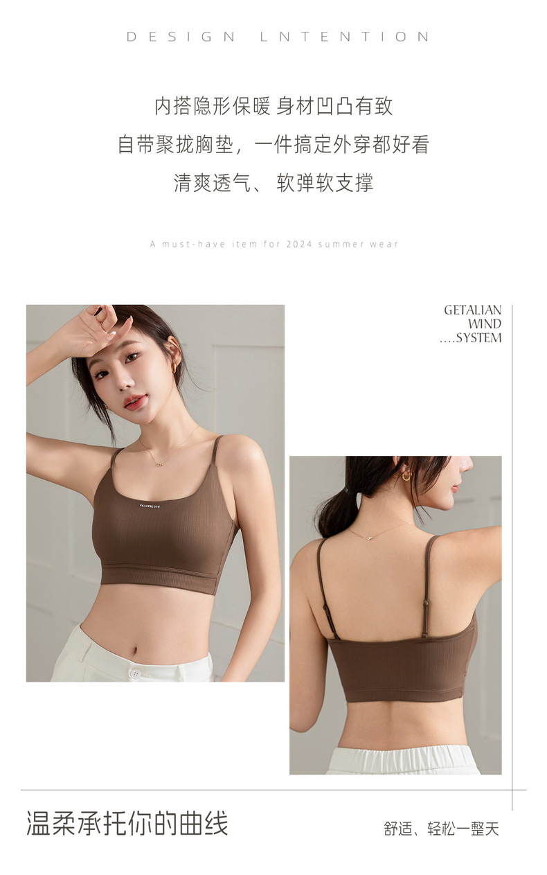 981氷糸無傷純色美背アルファベットキャミソール半固定カップ無鋼輪高級感抹胸春夏