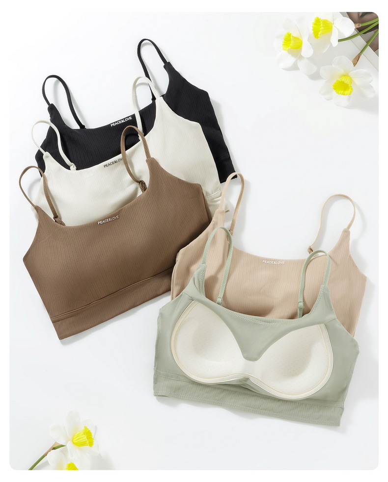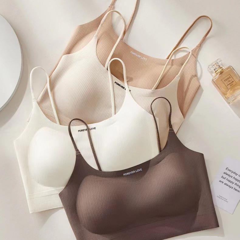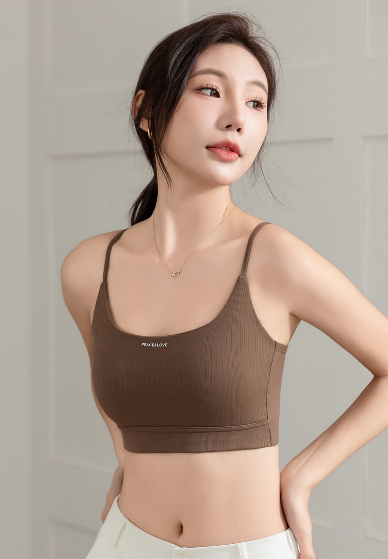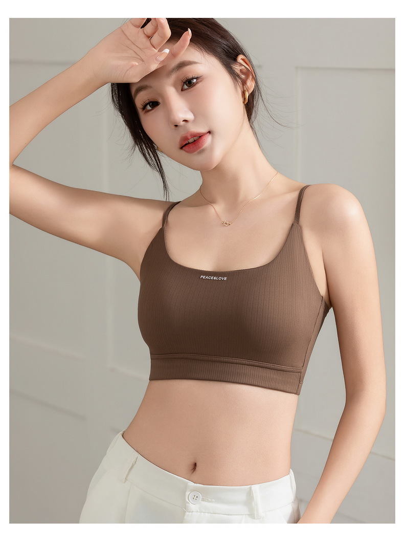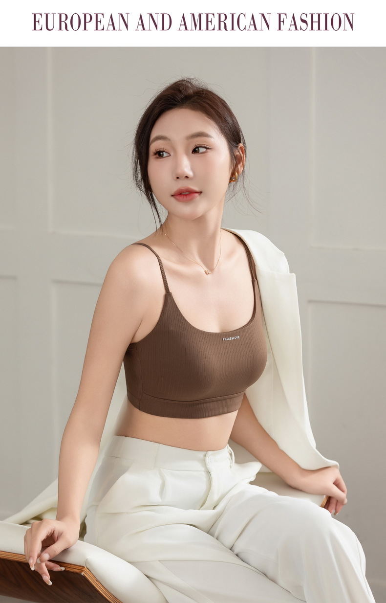 981氷糸無傷純色美背アルファベットキャミソール半固定カップ無鋼輪高級感抹胸春夏