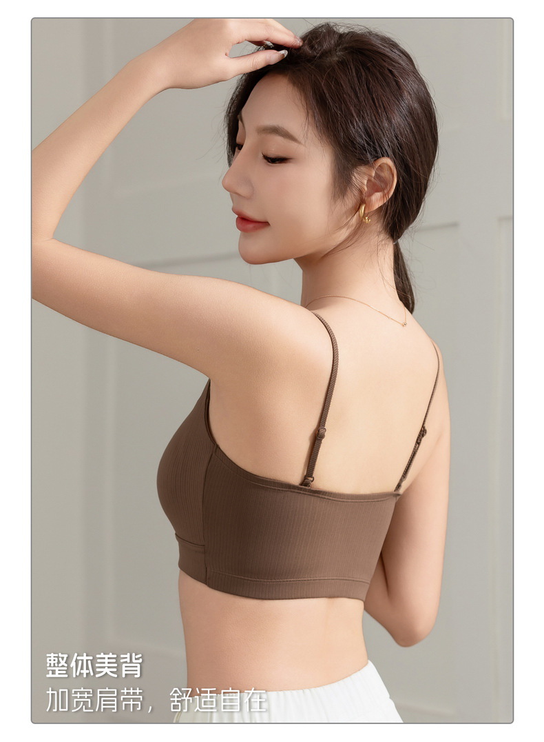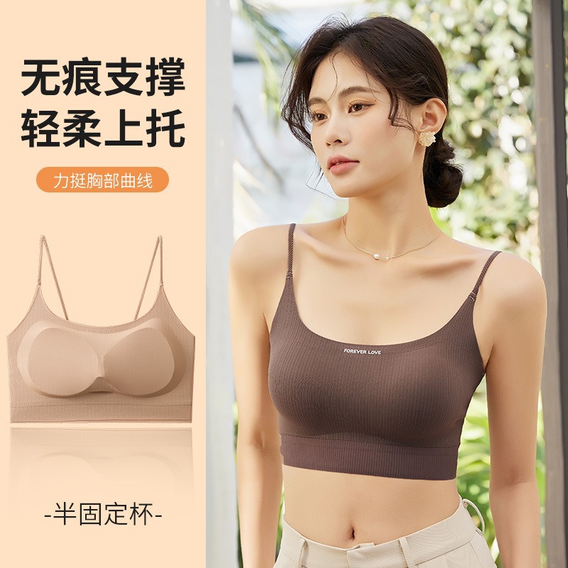 无痕一体式固定杯美背内衣女士无钢圈运动裹胸吊带背心式文胸舒适