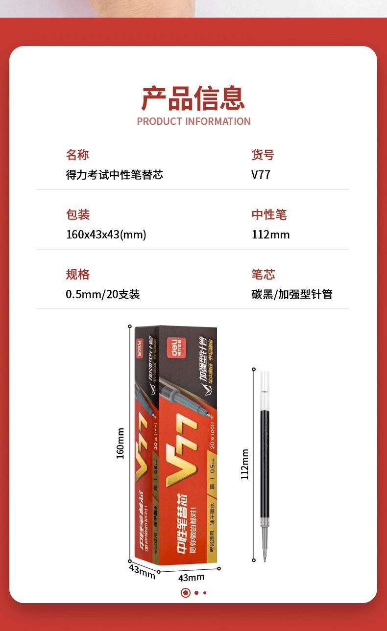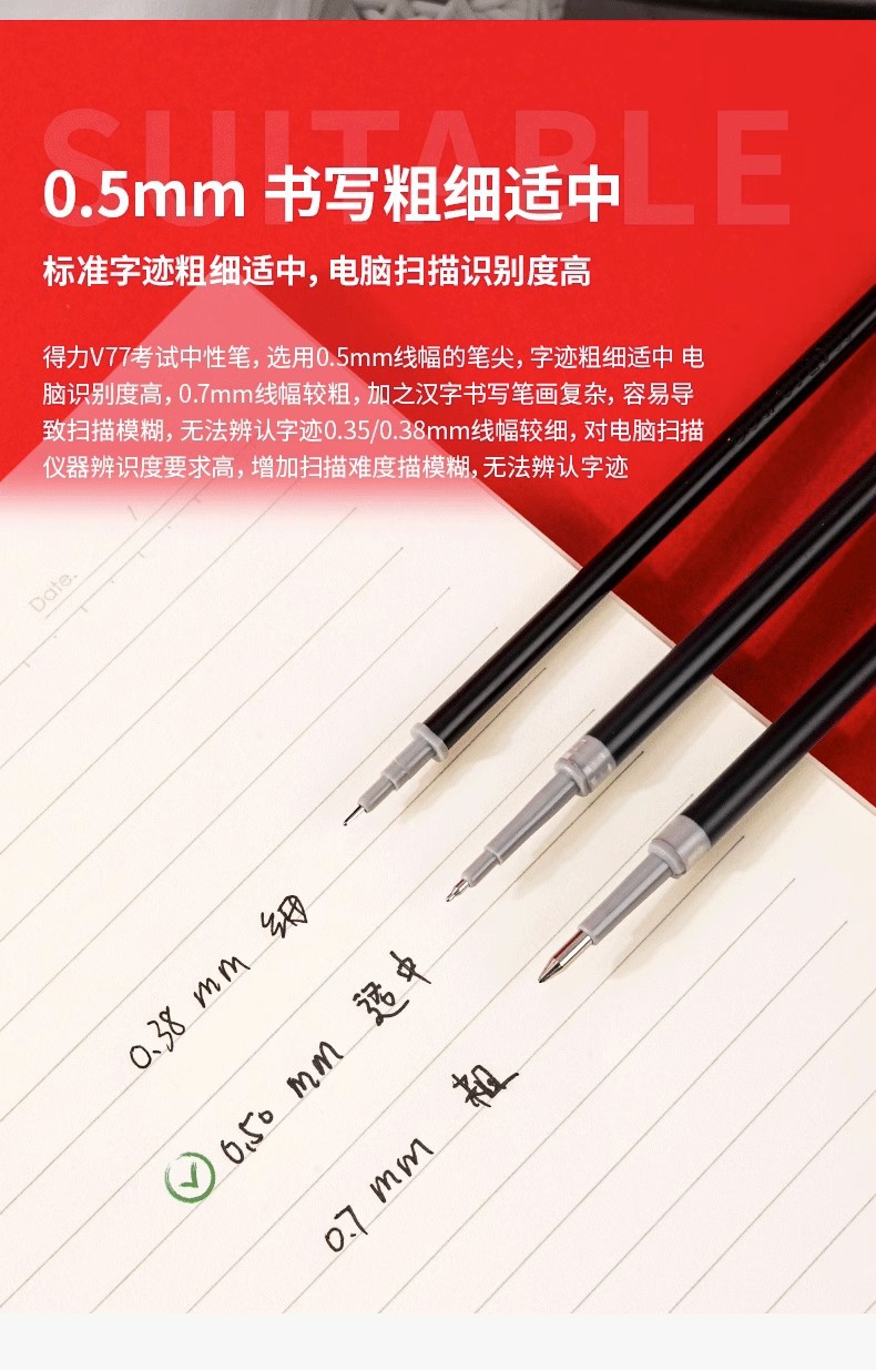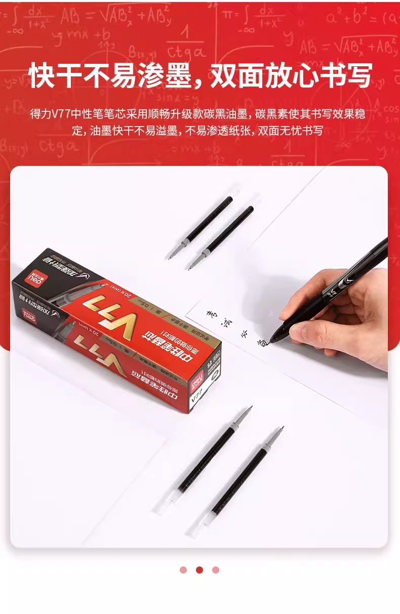 有力V77芯連中三元速乾試験中性芯0.5mm炭素ペン押しペン共通芯