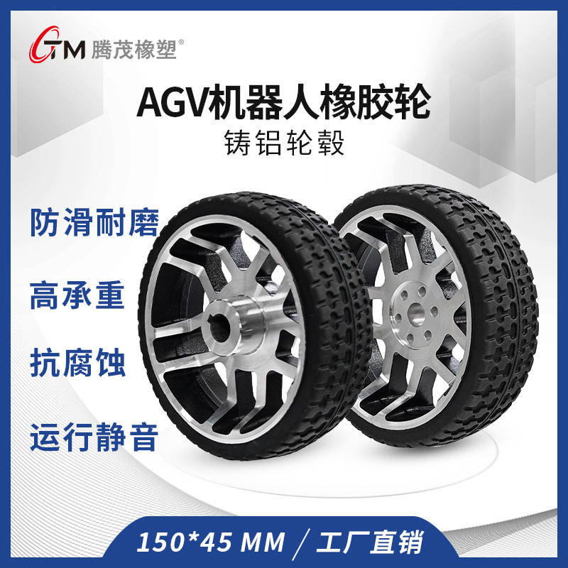 クロスボーダー中実滑り止めゴム輪AGVロボットゴムホイールフランジ溝駆動車輪150*45mm