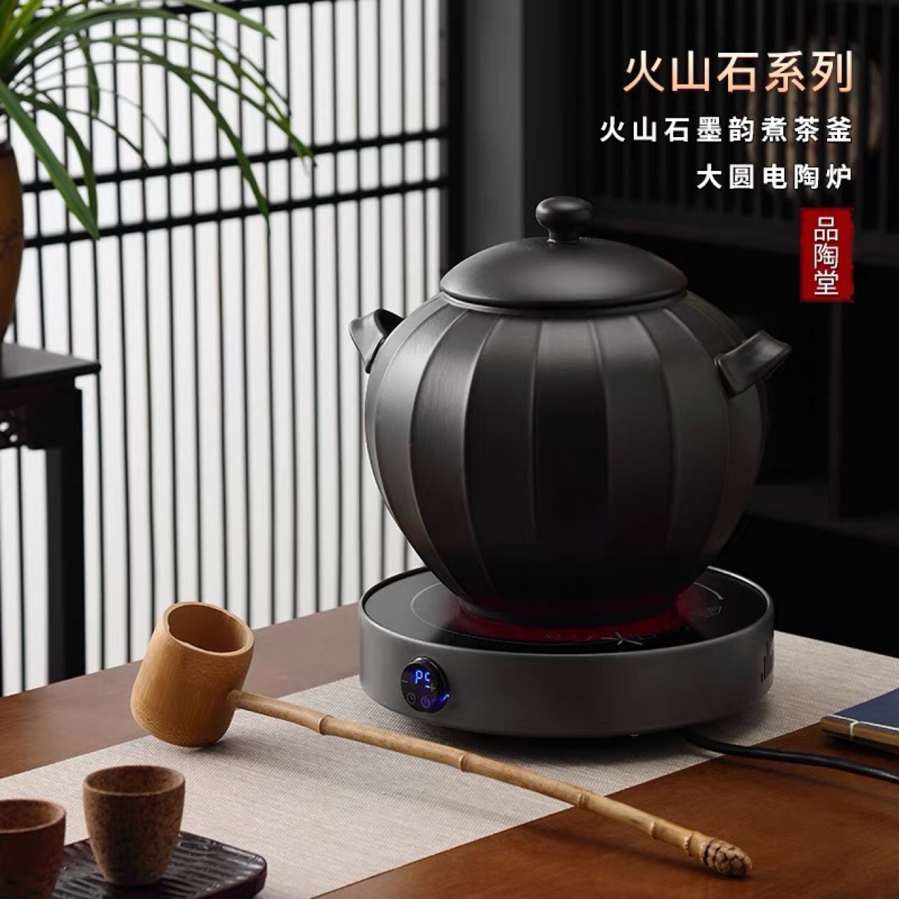 新中式茶饮馆炭火熬煮茶釜壶熬煮中药馆茶器具大容量火山石电陶炉