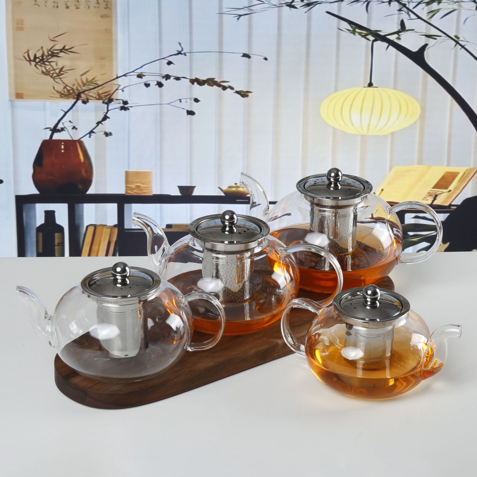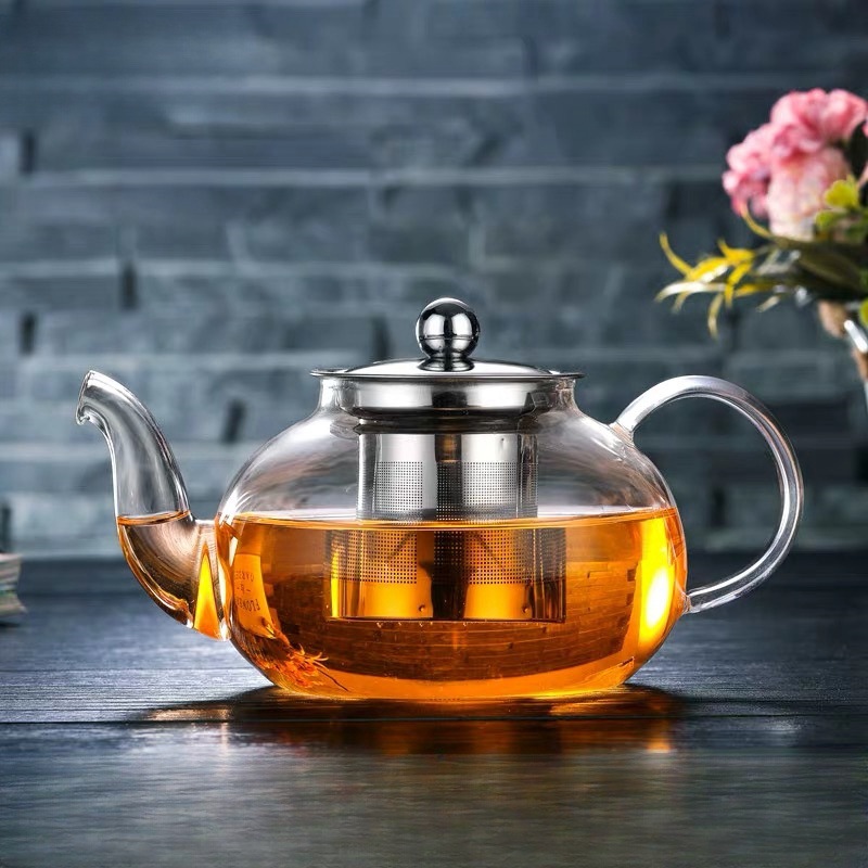 ガラス製ティーポット、ステンレス製フィルター、茶水分離、電気陶器コンロで煮茶、大容量、耐熱性、耐熱茶器