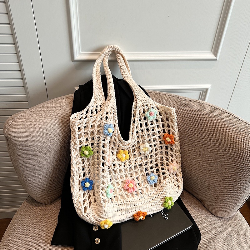 夏の透かし編みバッグ女性2025新型大衆シンプル流行バケツバッグ大容量ショルダーバッグクロスボーダー