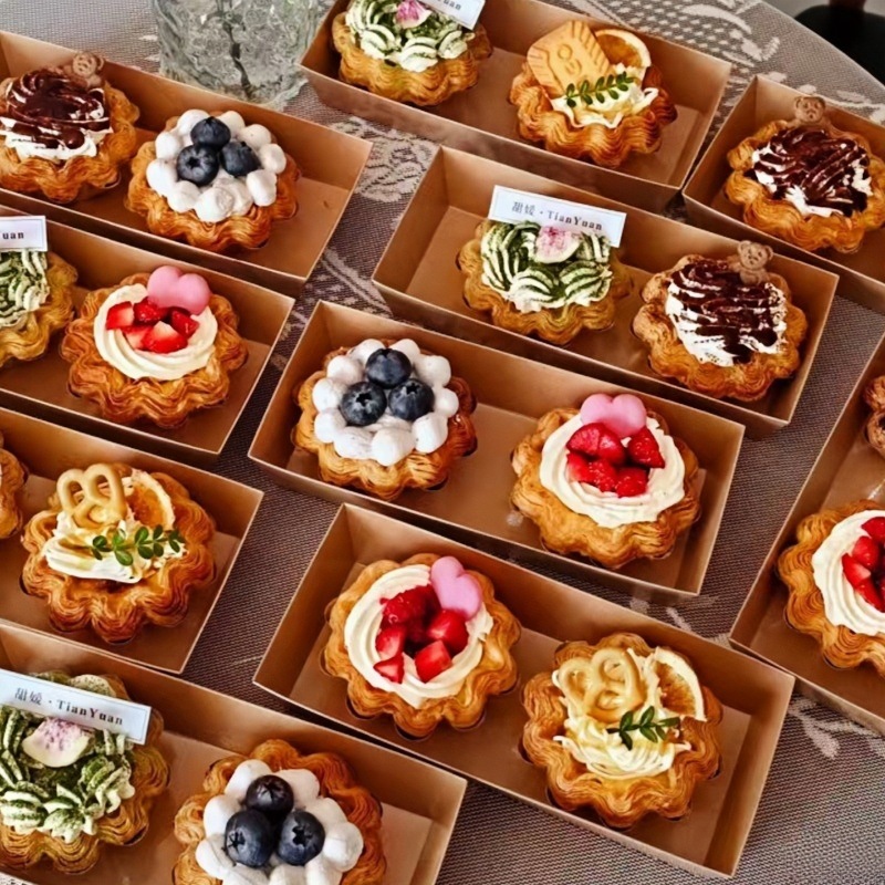 太阳花法式千层蛋挞可颂蛋挞盒烘焙甜品热狗三明治千层蛋挞包装盒