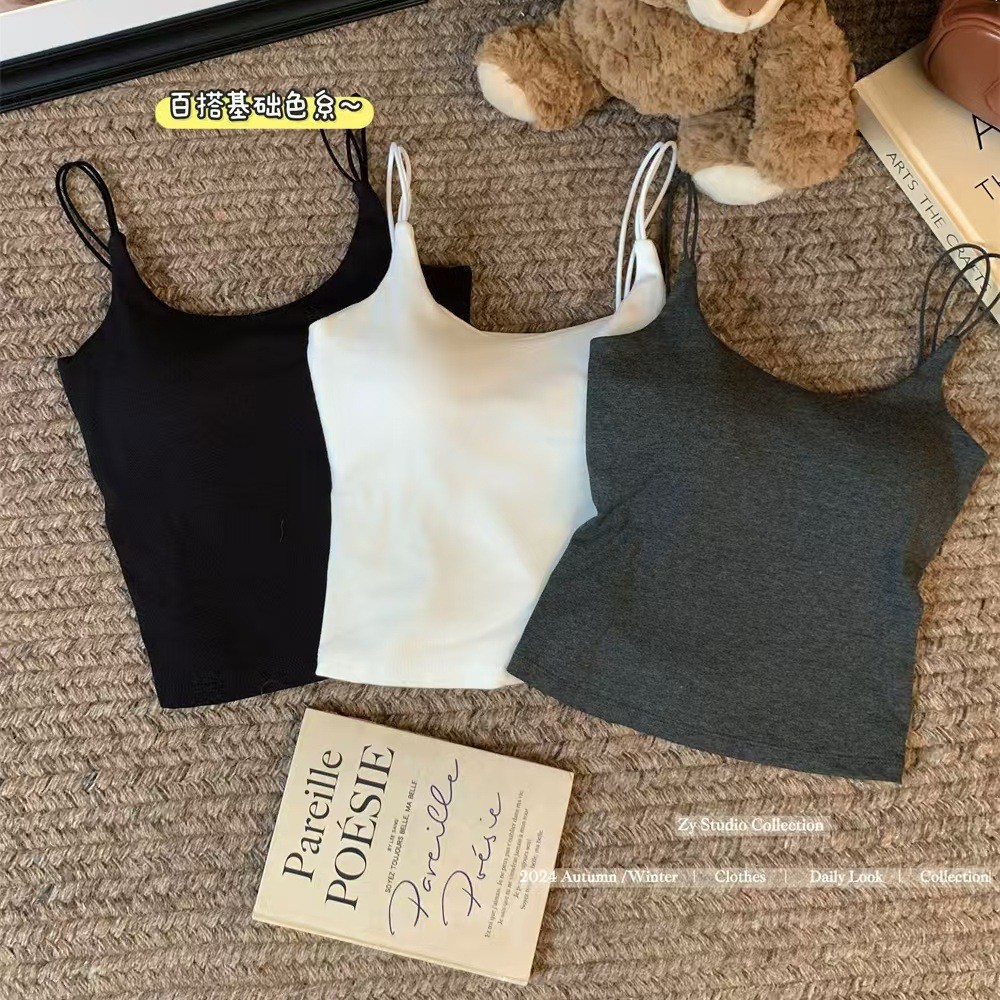 絶美のストラップの女性の白いベストの女性の夏の外は美の背もたれの胸のパッドを着て身を修める純色の中で底の袖なしの上着を掛けます。