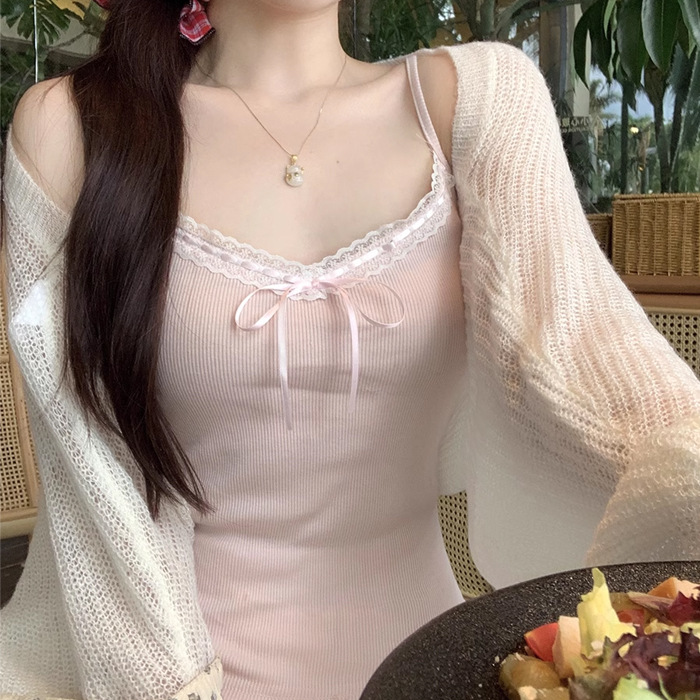 ホットガールデザインのレースリボンキャミソール、胸パッド付き、美しいバックデザイン、胸を包み込み、スリムに見せ、アウターウェアとしても使えるボトムストップス
