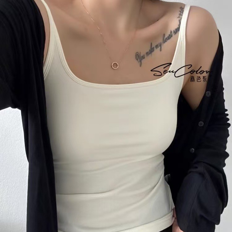 毛を磨いている人の綿は保温しています。肩は美背のキャミソールを持っています。女性は胸パッドを持っています。