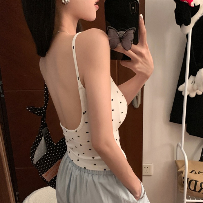 ギャルの波点のサスペンダーのベストの女性の修身の中に胸のクッションの美背をつけて胸の大きいuを巻いて背中を露出して上着を着ます。