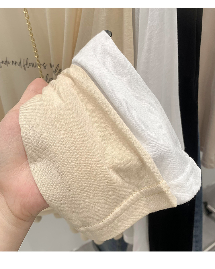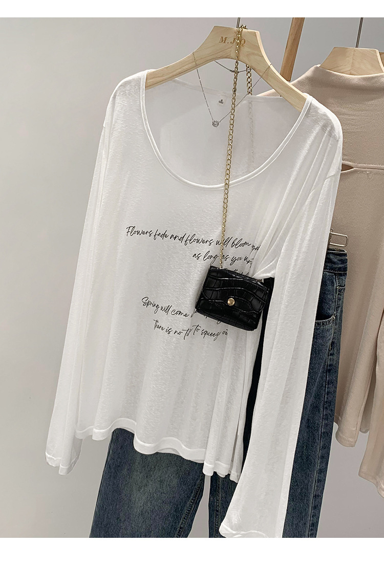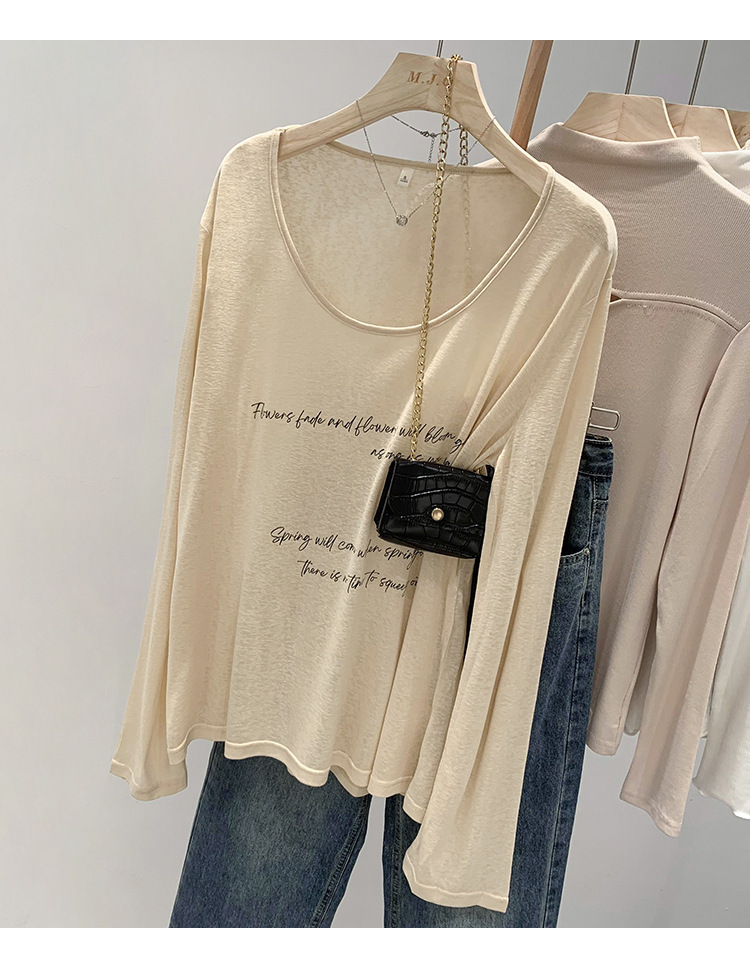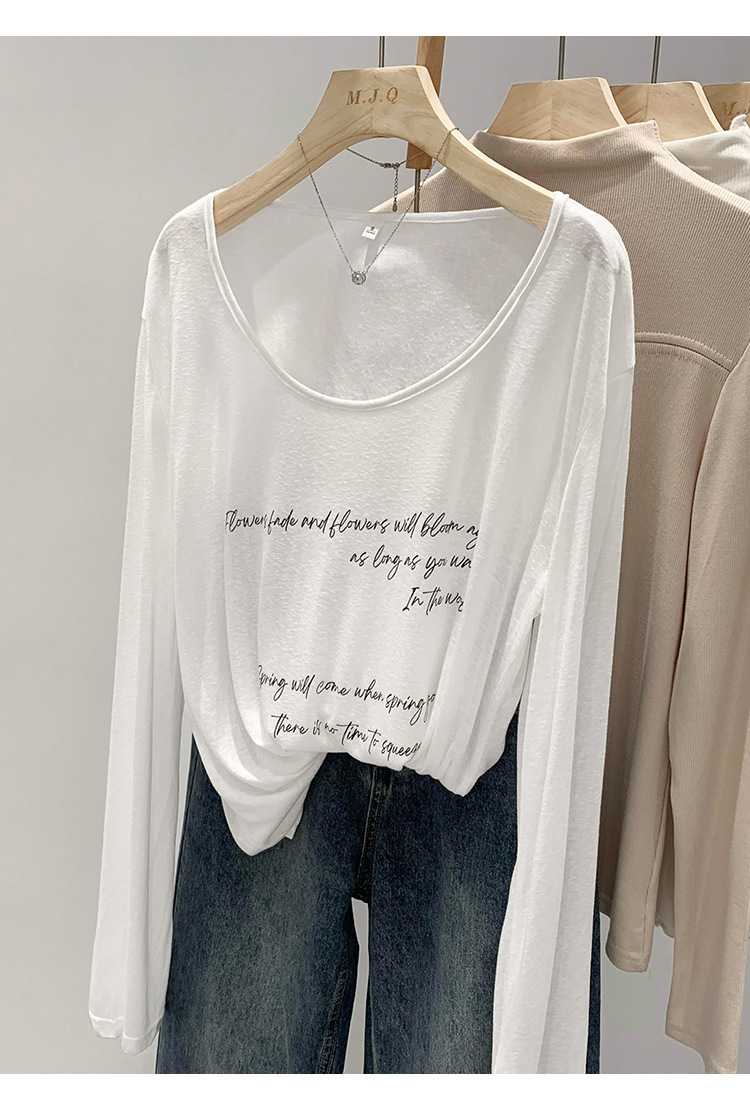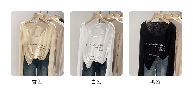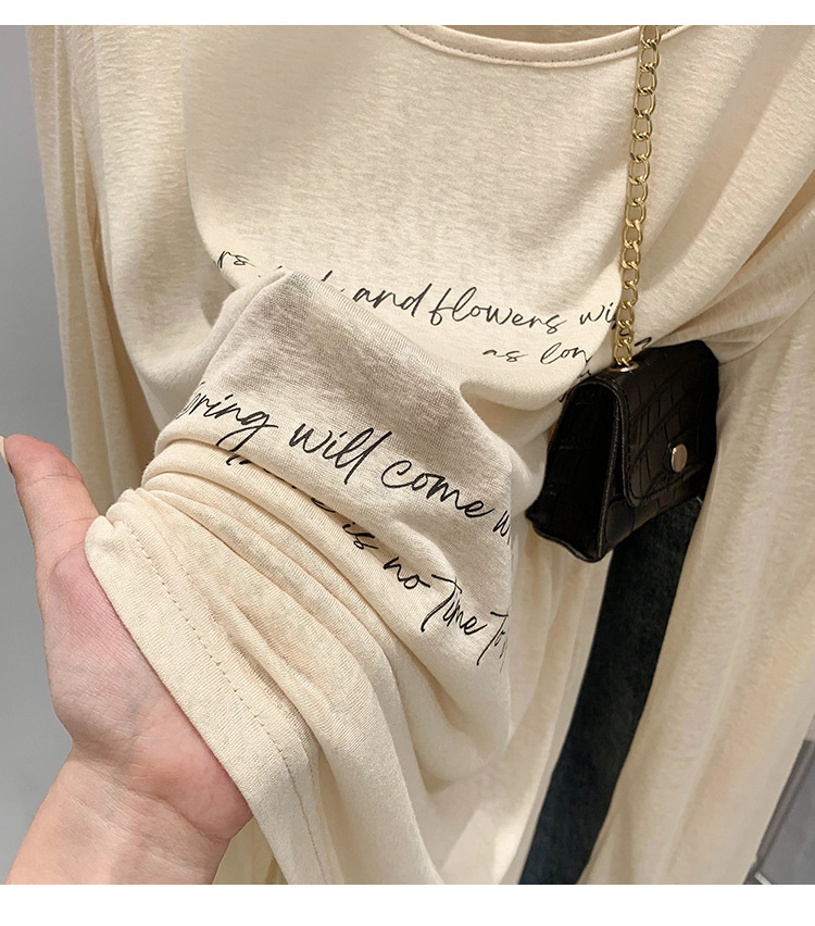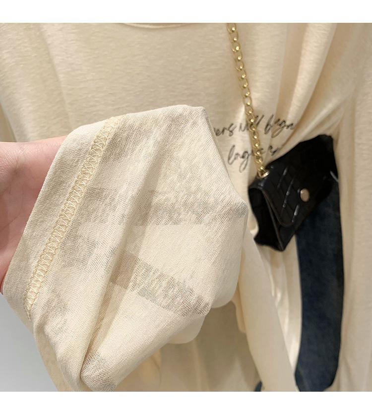 2024夏新款簿款字母印花T恤女中长款遮屁股防晒罩衫宽松长袖上衣
