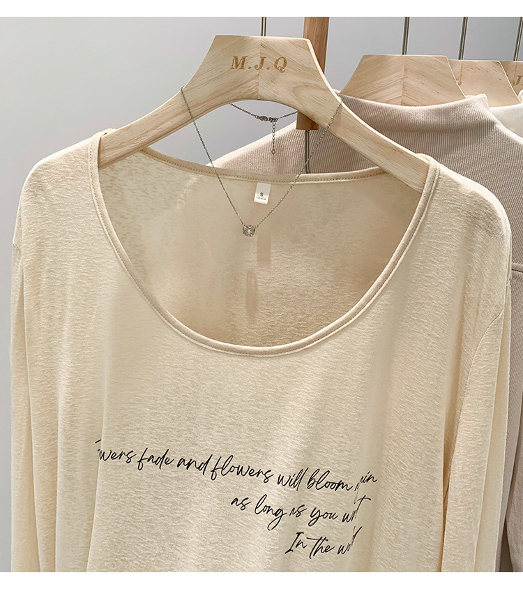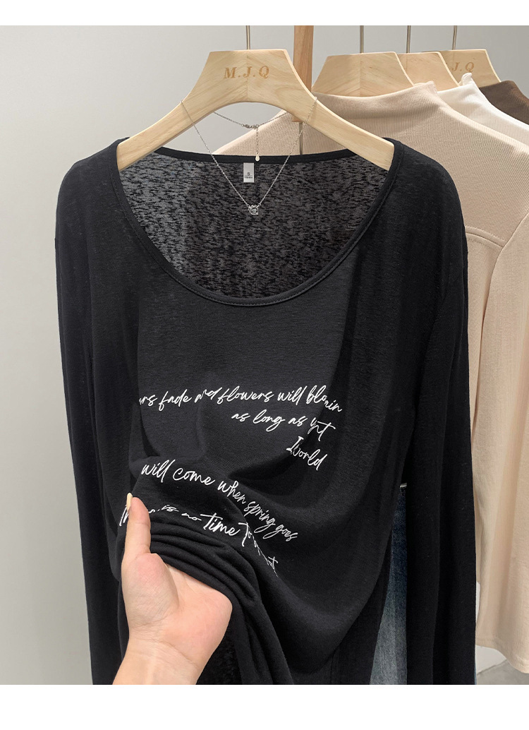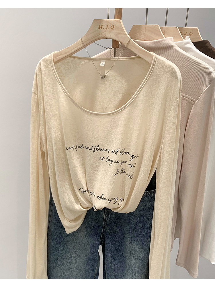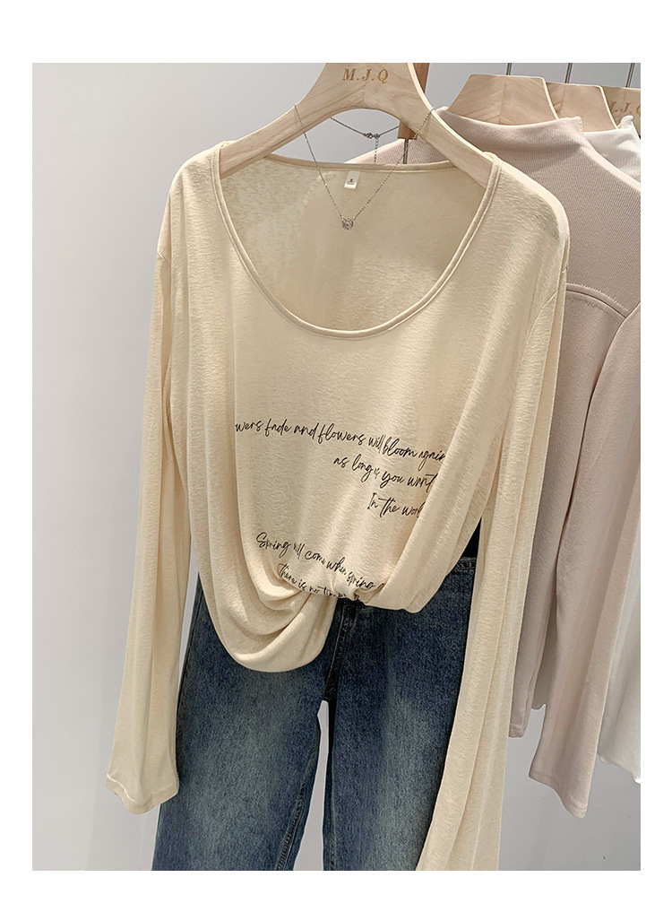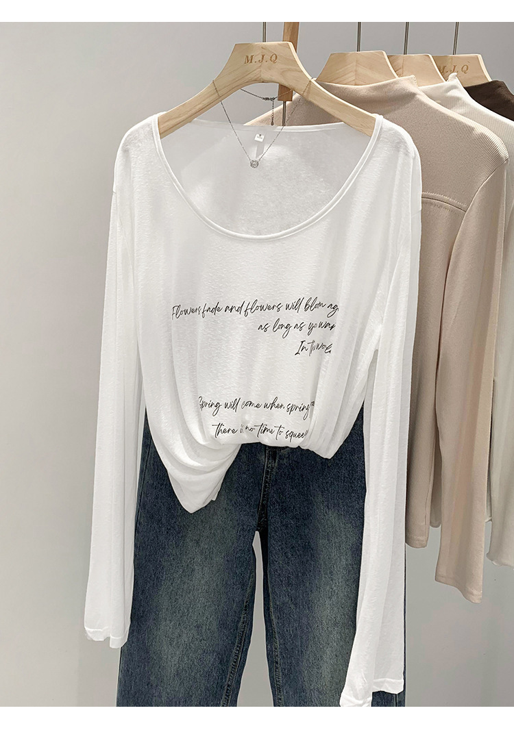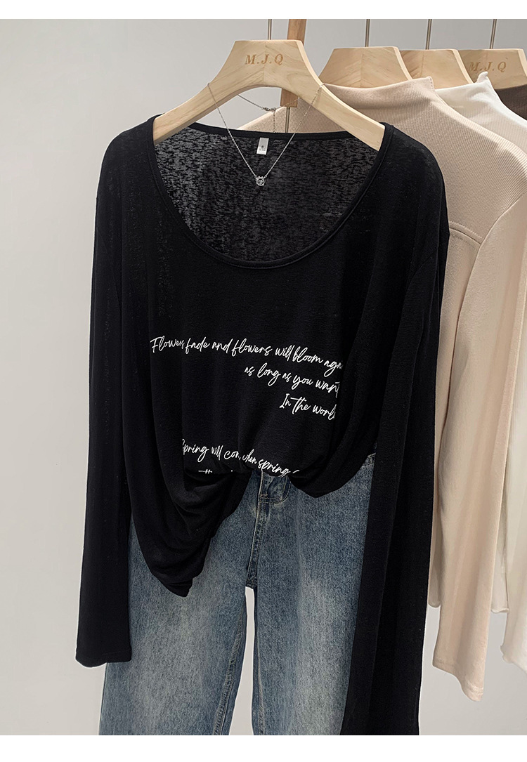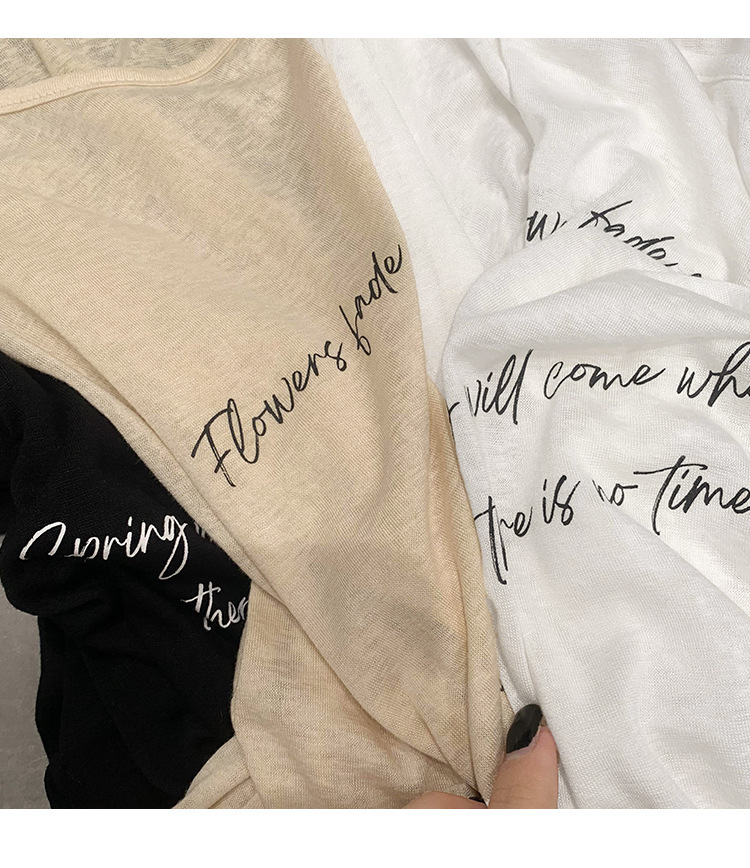 2024夏新款簿款字母印花T恤女中长款遮屁股防晒罩衫宽松长袖上衣