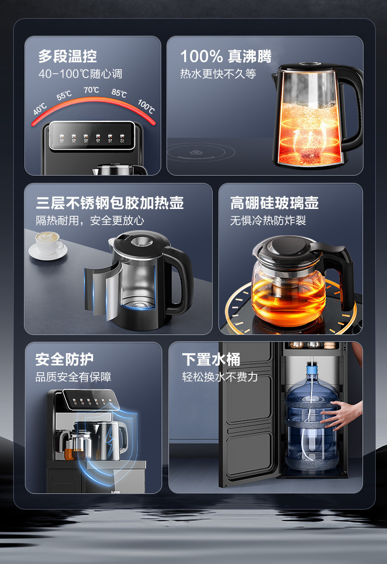 2025 ティーバーマシンスマートウォーターディスペンサーリビングルームホーム下部バケツ垂直断熱オールインワンマシンリアルタイム温度表示