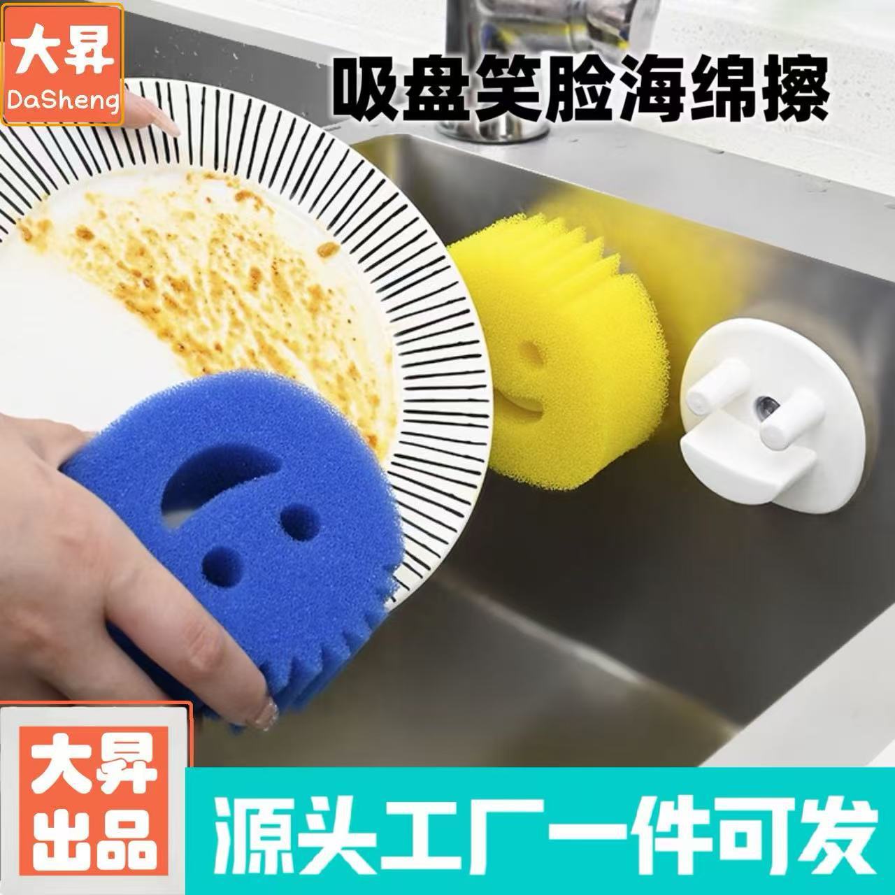 创意吸盘笑脸海绵清洁擦厨房高密度家用刷锅跨境加厚百洁布洗碗擦