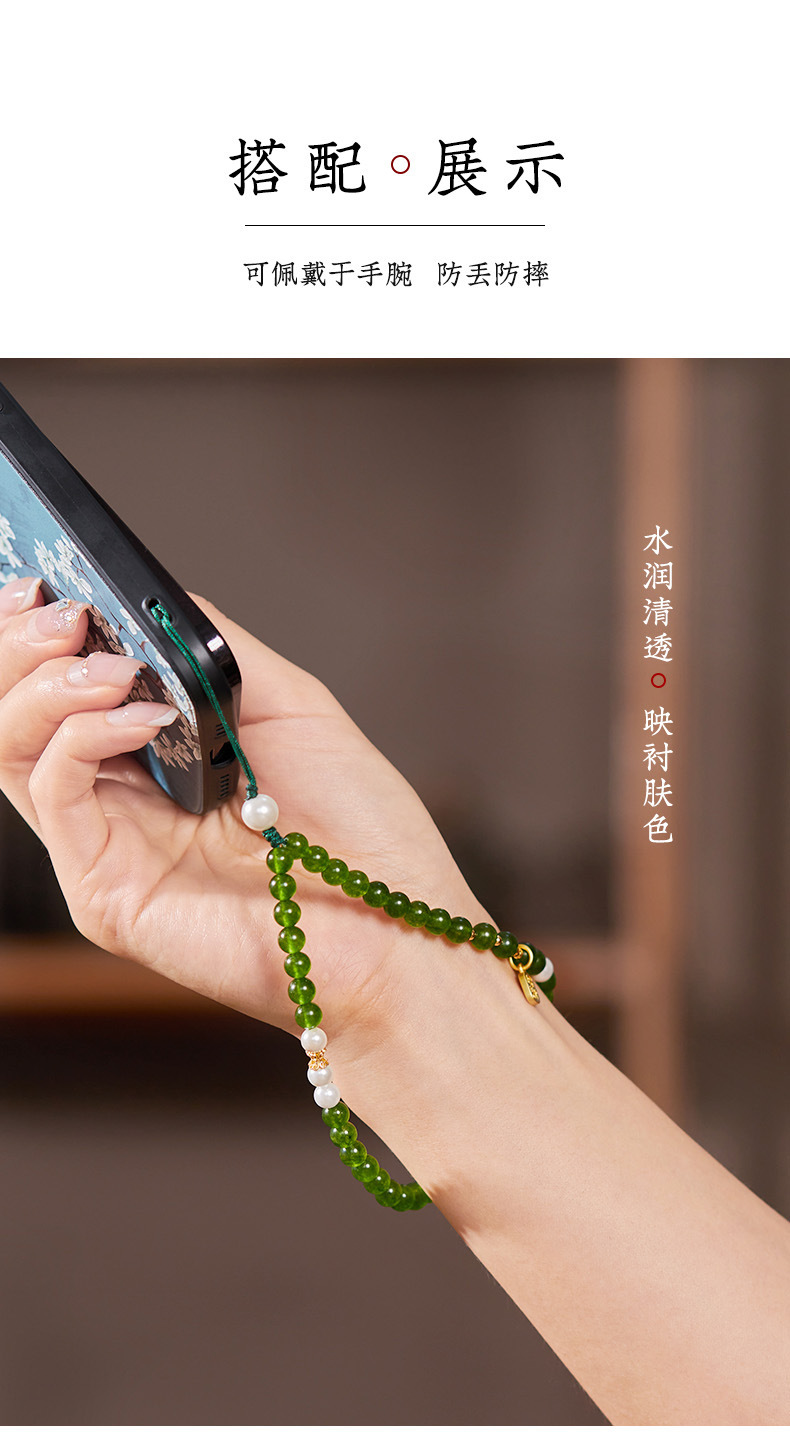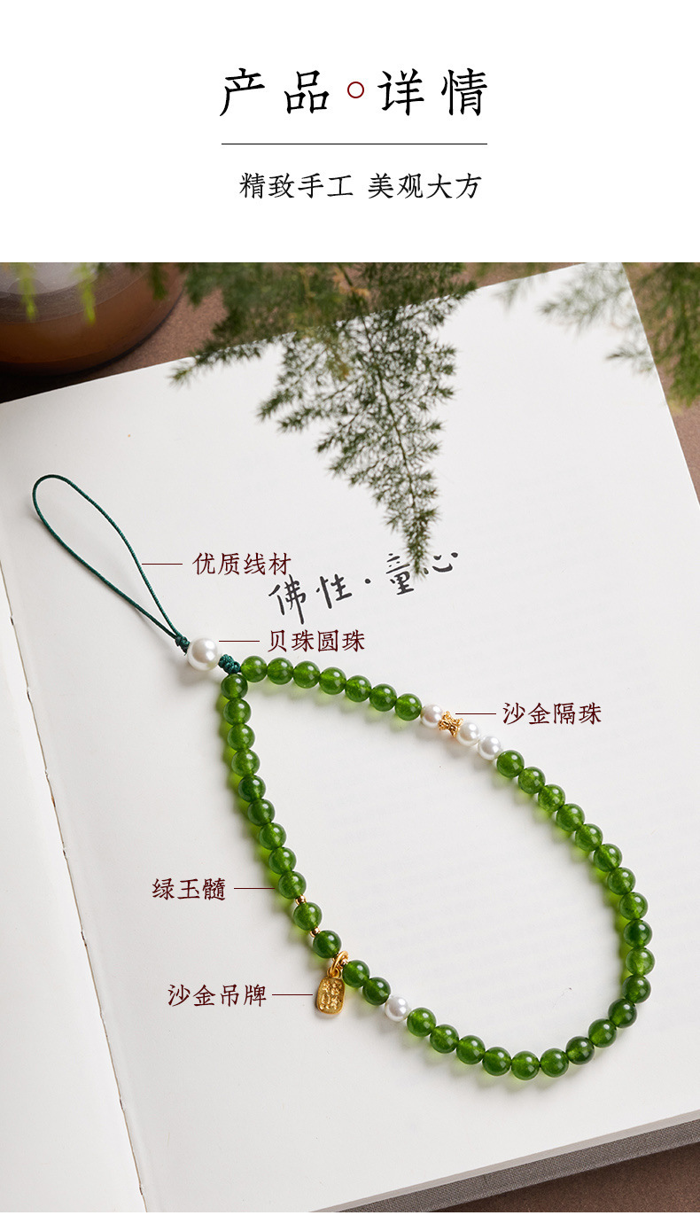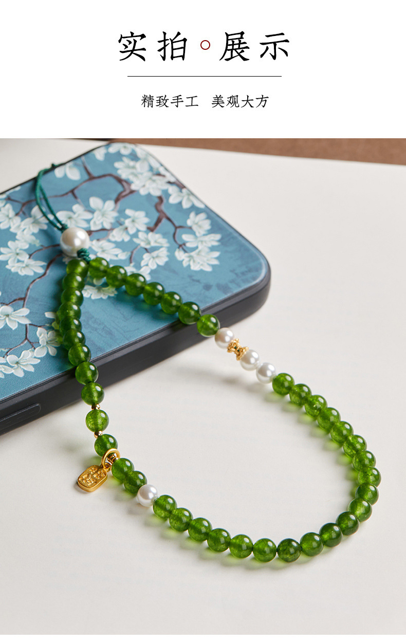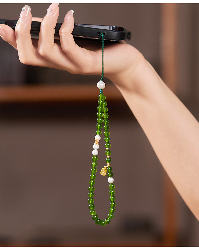 オリジナルの清新な墨緑玉髄携帯チェーン女性中国民族風貝珠携帯ケースのストラップ