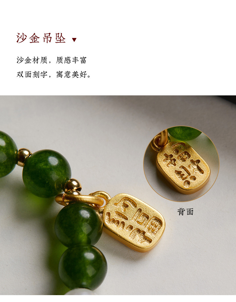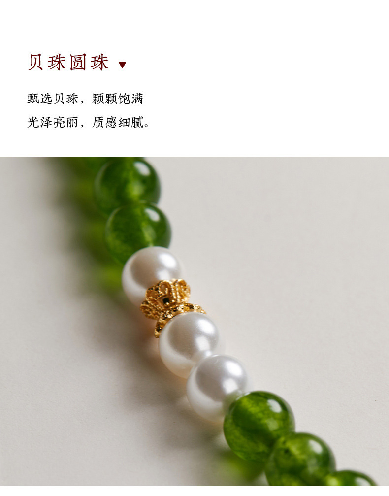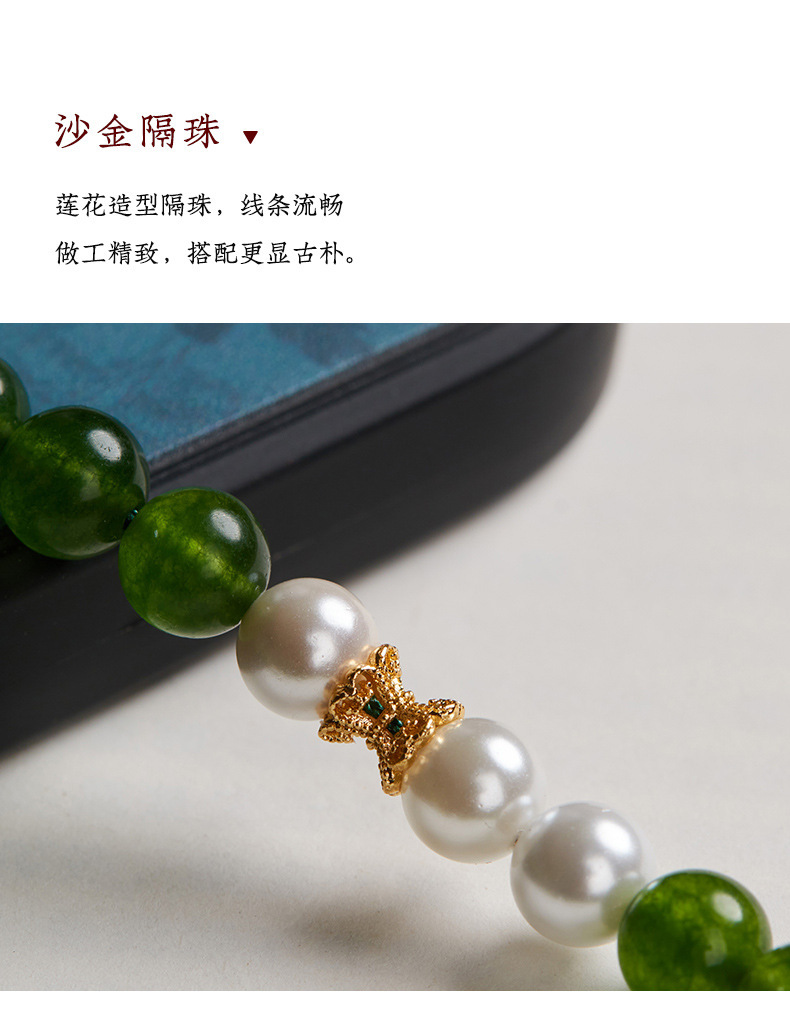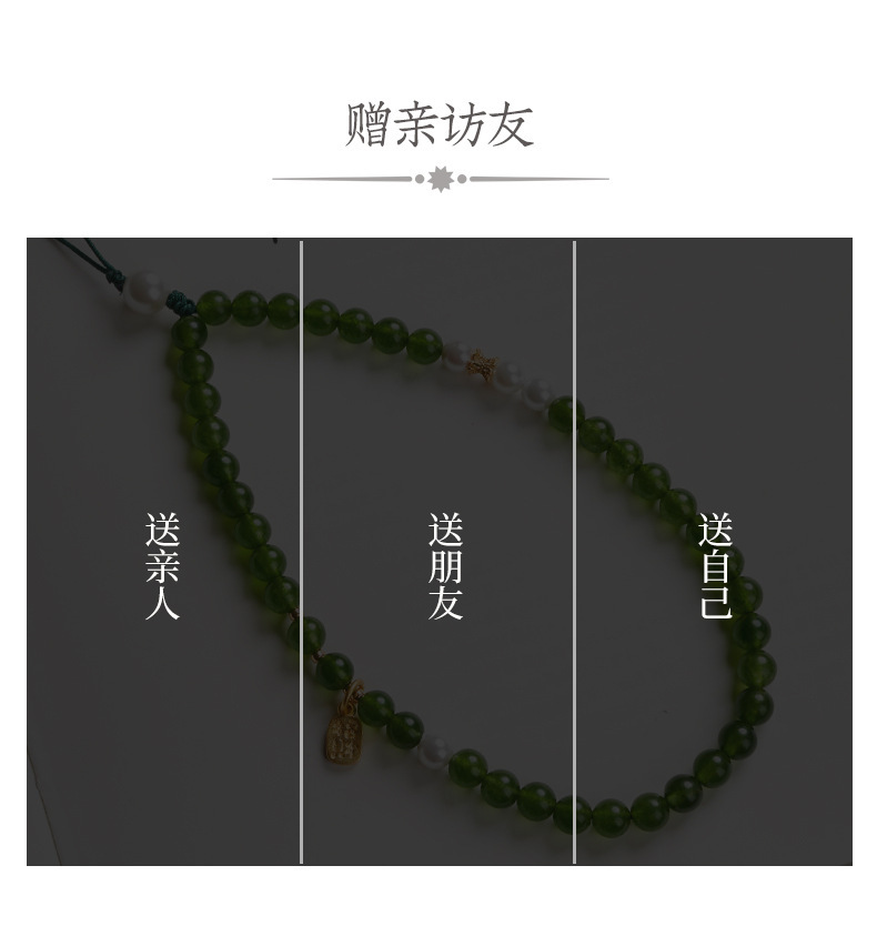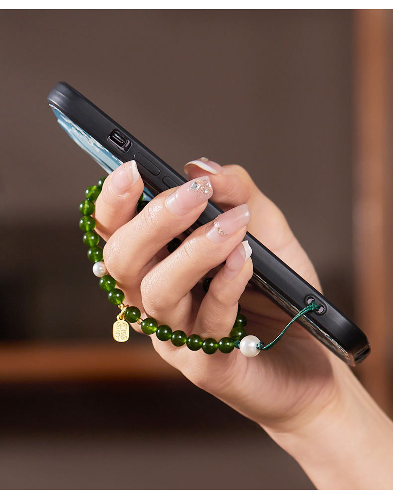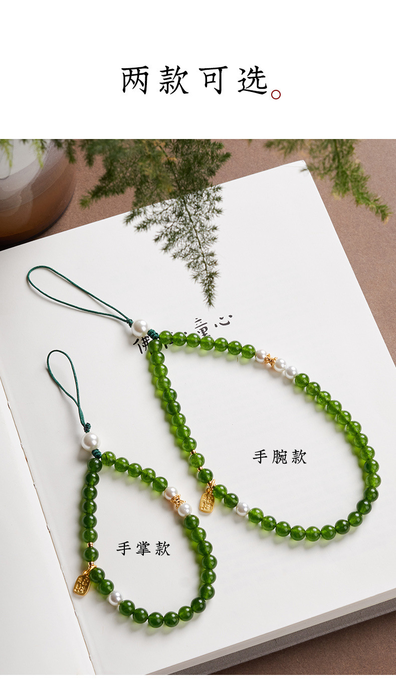 オリジナルの清新な墨緑玉髄携帯チェーン女性中国民族風貝珠携帯ケースのストラップ