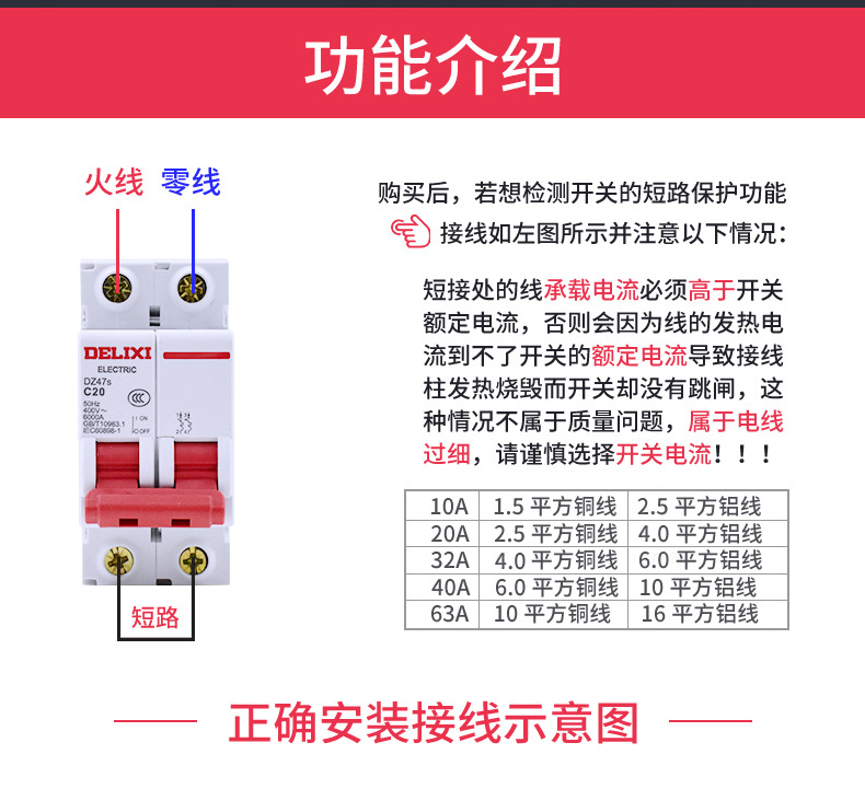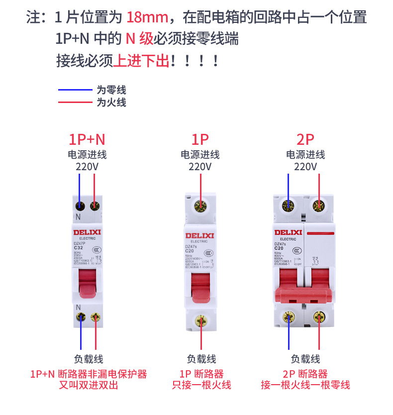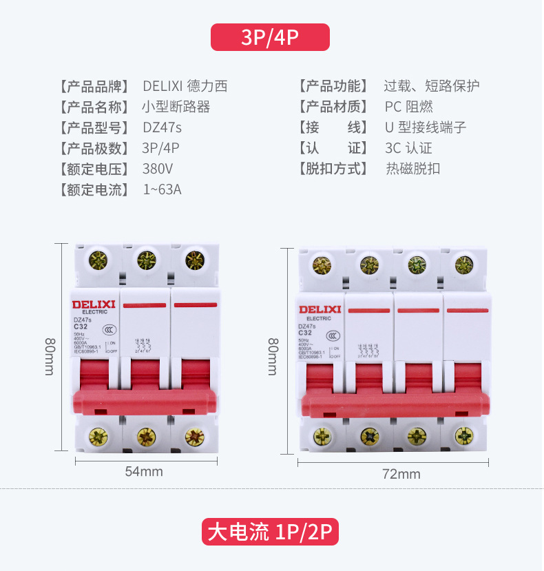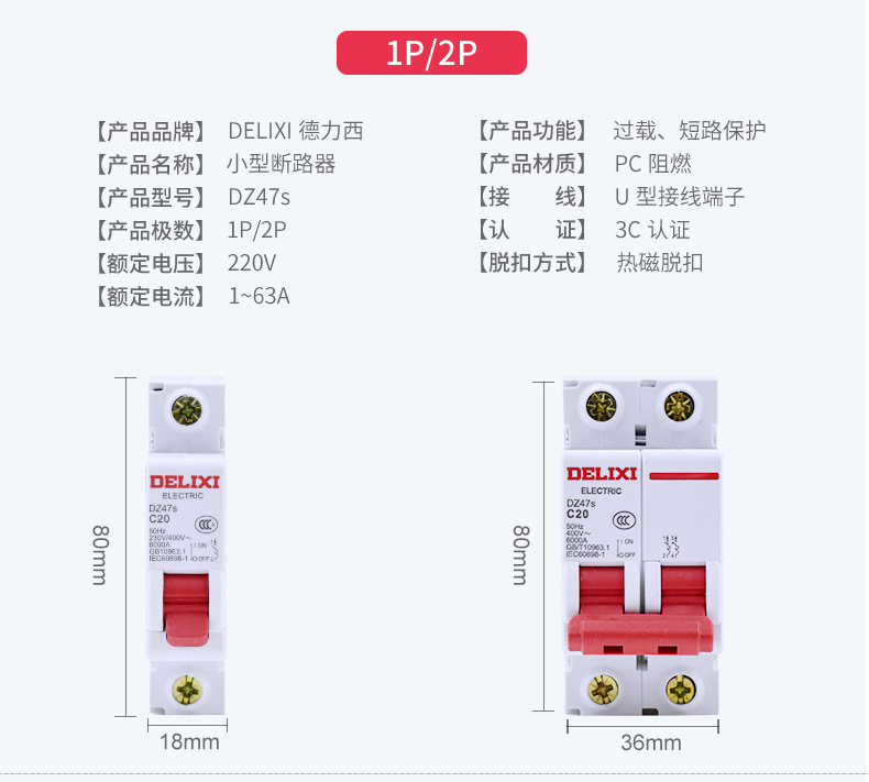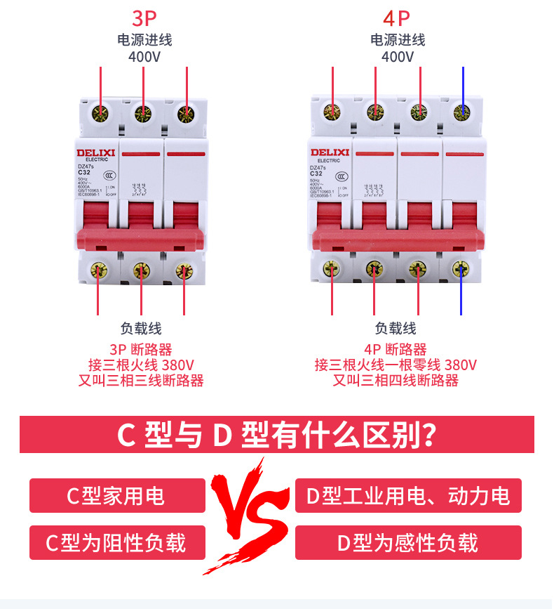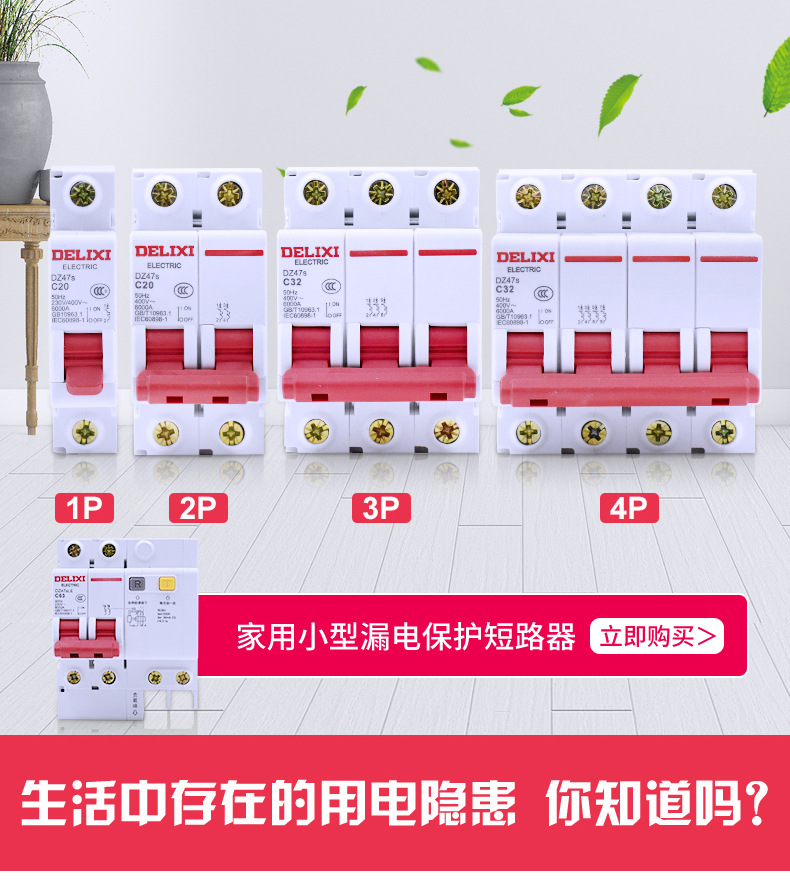 DZ47s エアスイッチサーキットブレーカー家庭用単相三相メインスイッチ 1P2P3P16A20A32A63A