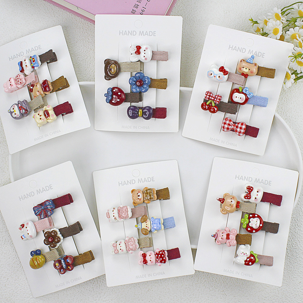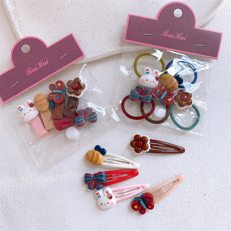 5つ袋入り可爱いクロミヘアークリップ姫前髪つかみクリップ髪饰り子供用トランペットちぎりヘアクリップ髪饰り
