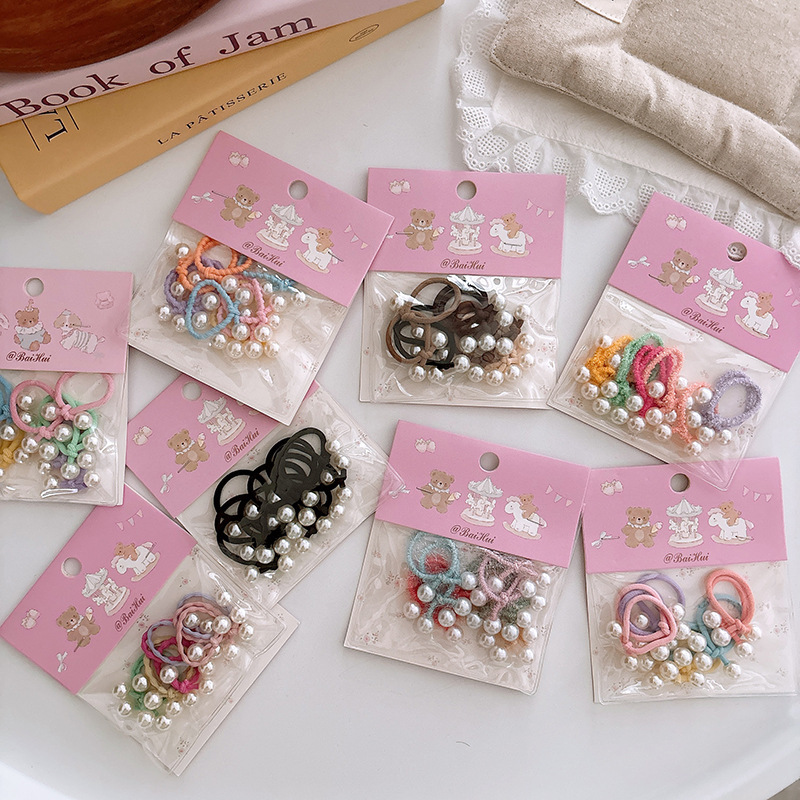 袋装10个高弹力珍珠儿童发绳甜美百搭女童打结皮筋糖果色公主头绳