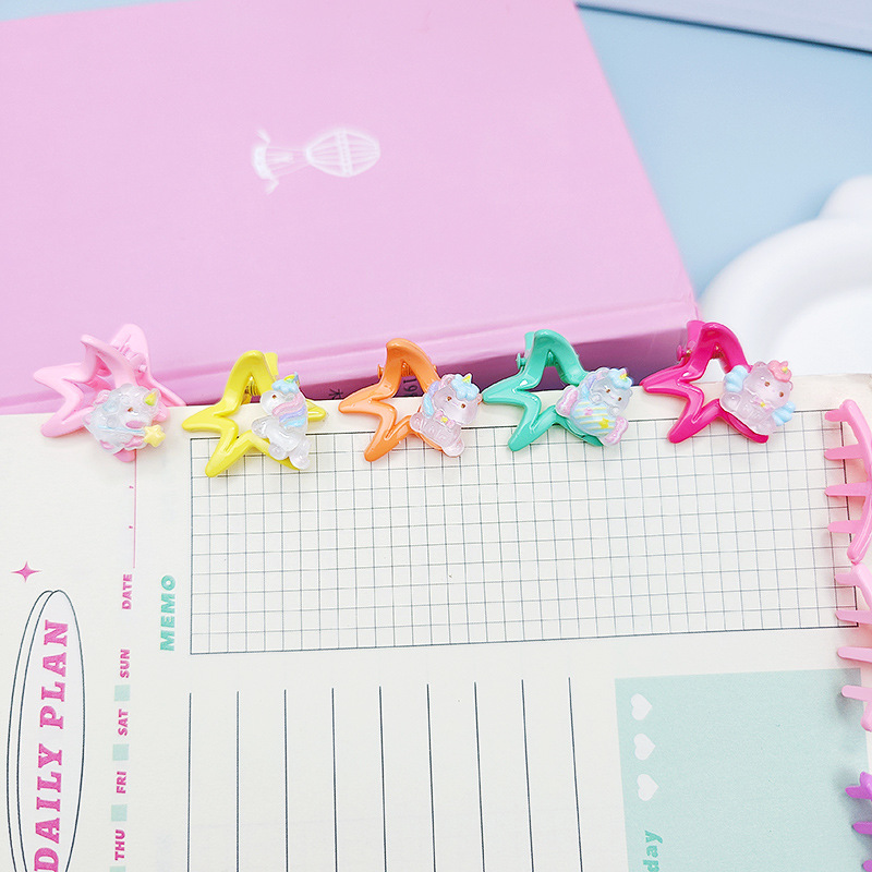 韓国語版のカラフルな漫画の星 BB クリップ子供用リボンヘア前髪サイドクリップかわいい女の赤ちゃんヘアアクセサリー