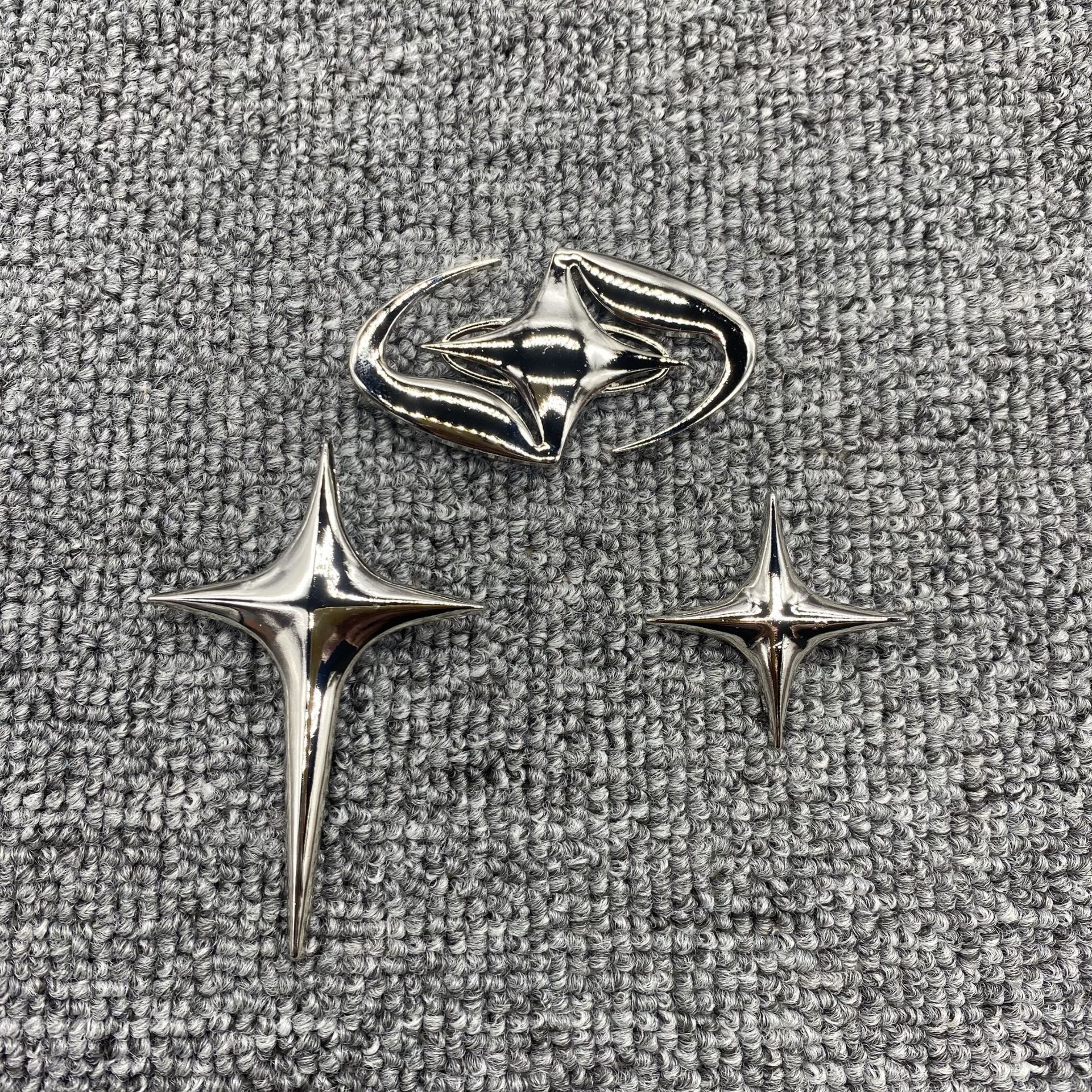 シルバー十字星亜鉛合金金属男女スーツブローチ秋胸花軽贅沢感デザイン感星芒ピン