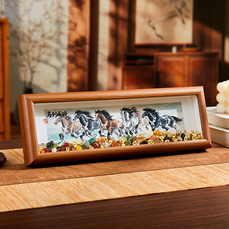 马到成功国画加七彩水晶石金元宝家居装饰摆件礼品招财招运工艺品