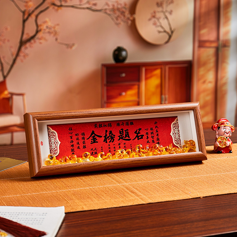 九紫离火时来运转木质相框摆件招财进宝书桌办公室玄关相框摆台
