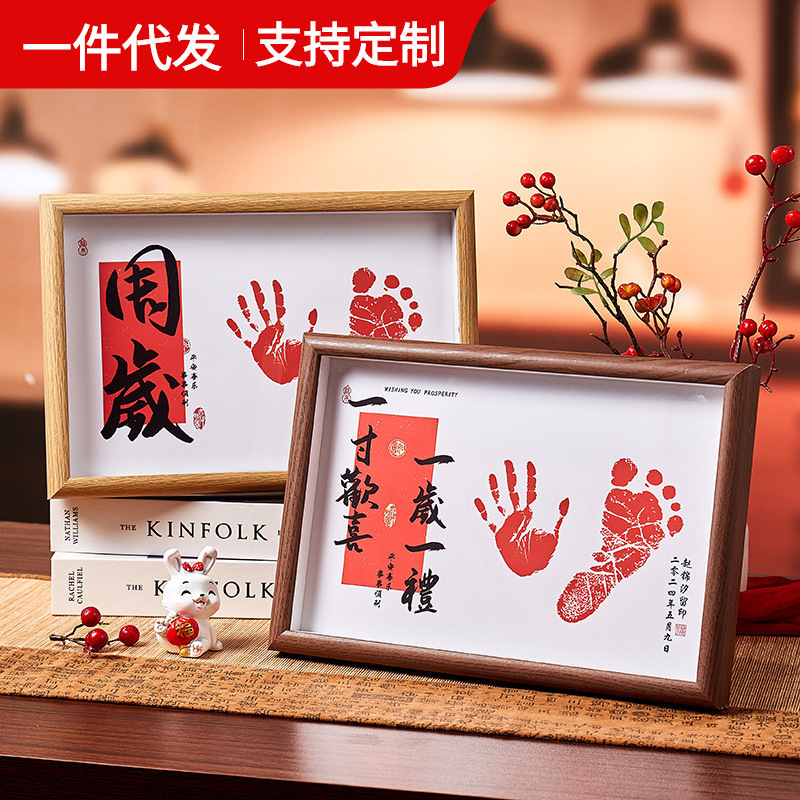 1歳の手形と足形、生後100日の赤ちゃん、手形と足形の額縁、誕生日プレゼント、記念式典用品、小道具、100日