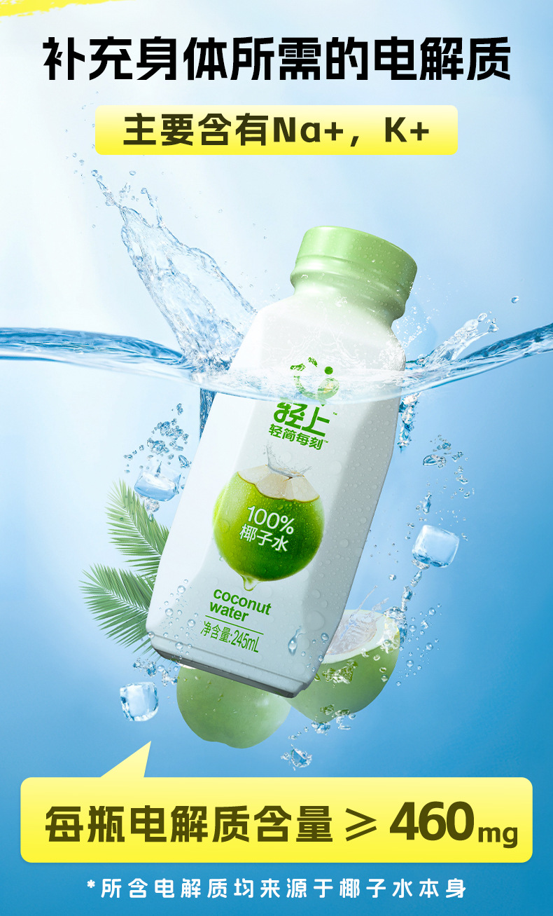 軽い上100% ココナッツ水天然電解質0脂ココナッツジュース飲料245ml