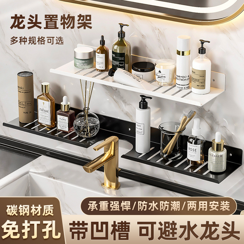バスルームスペースアルミシンク収納ラックパンチフリー壁掛けキッチン蛇口スパイス収納ラック