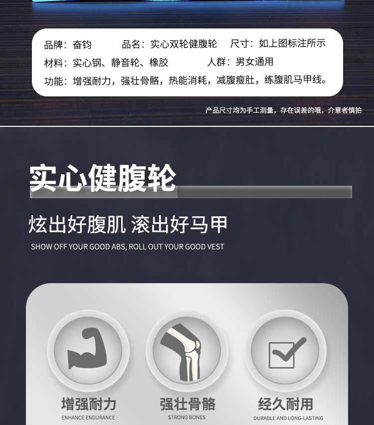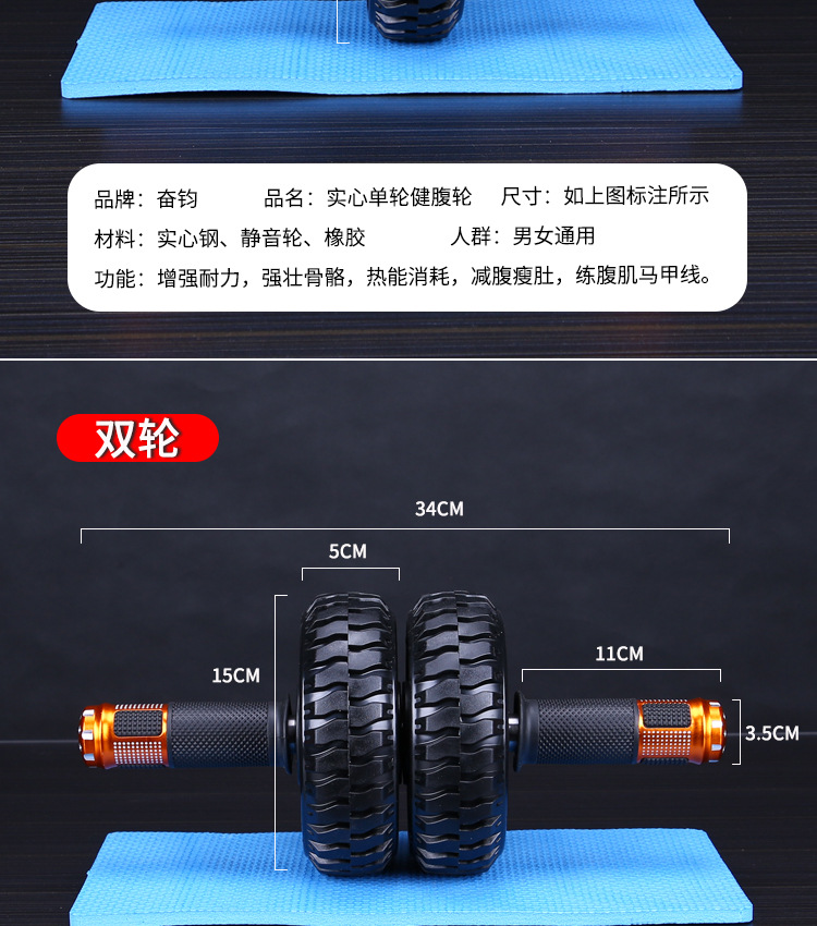 奮鈞二輪/単輪健腹輪男性プロ級腹筋輪軸受単輪家庭用フィットネス運動器材