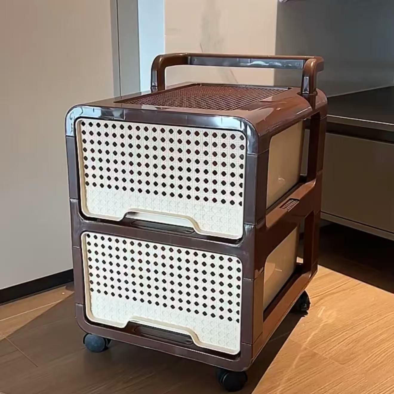 中古风收纳柜小推车家用落地可移动置物架卧室床头柜抽屉式储物柜