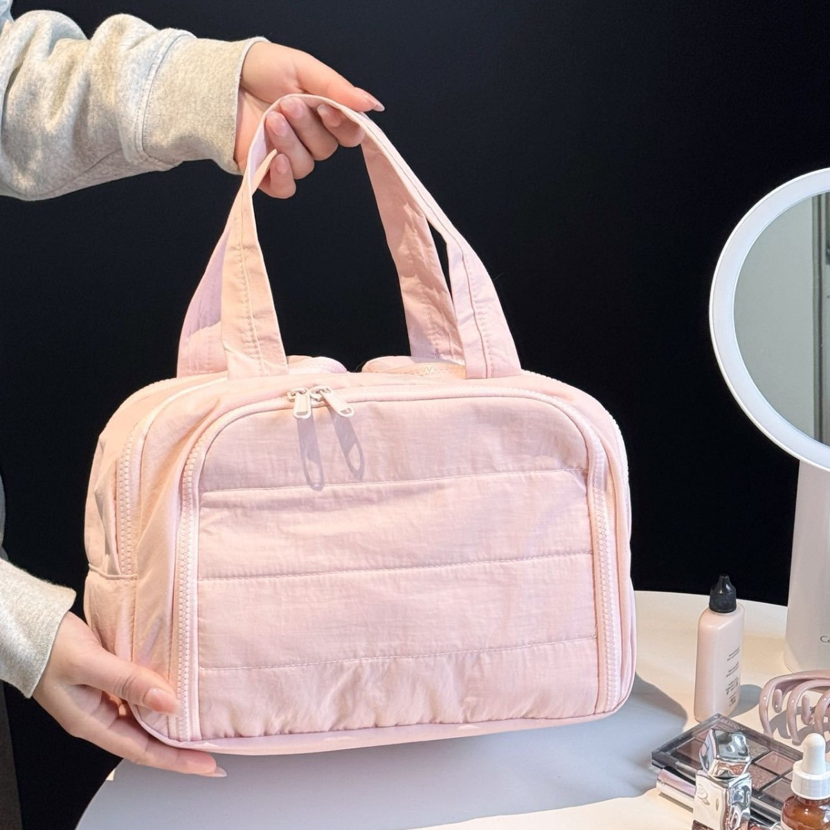 2025高颜値手持ち式洗面バッグ大容量化粧品収納バッグ出張旅行携帯型スキンケアバッグ