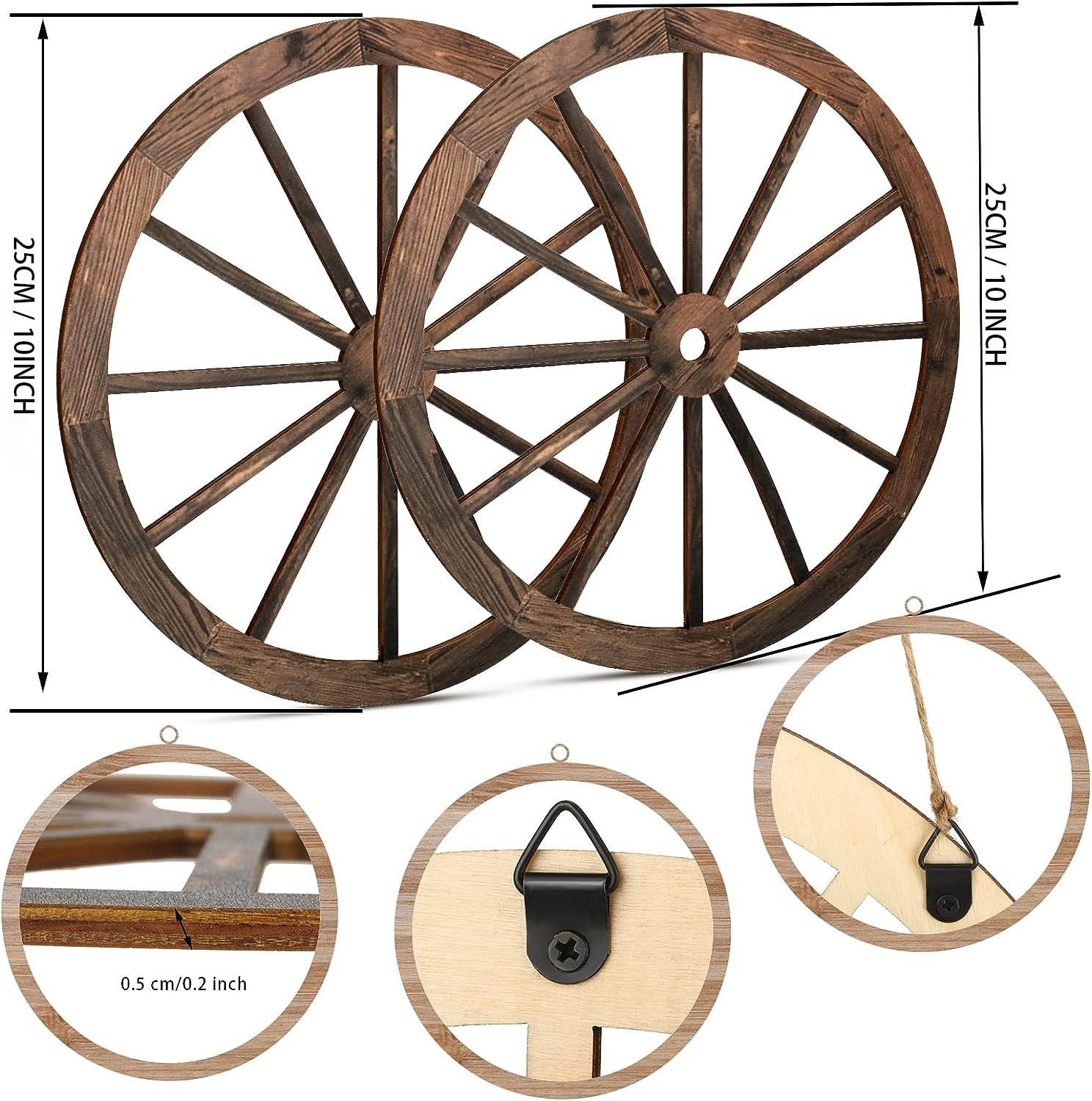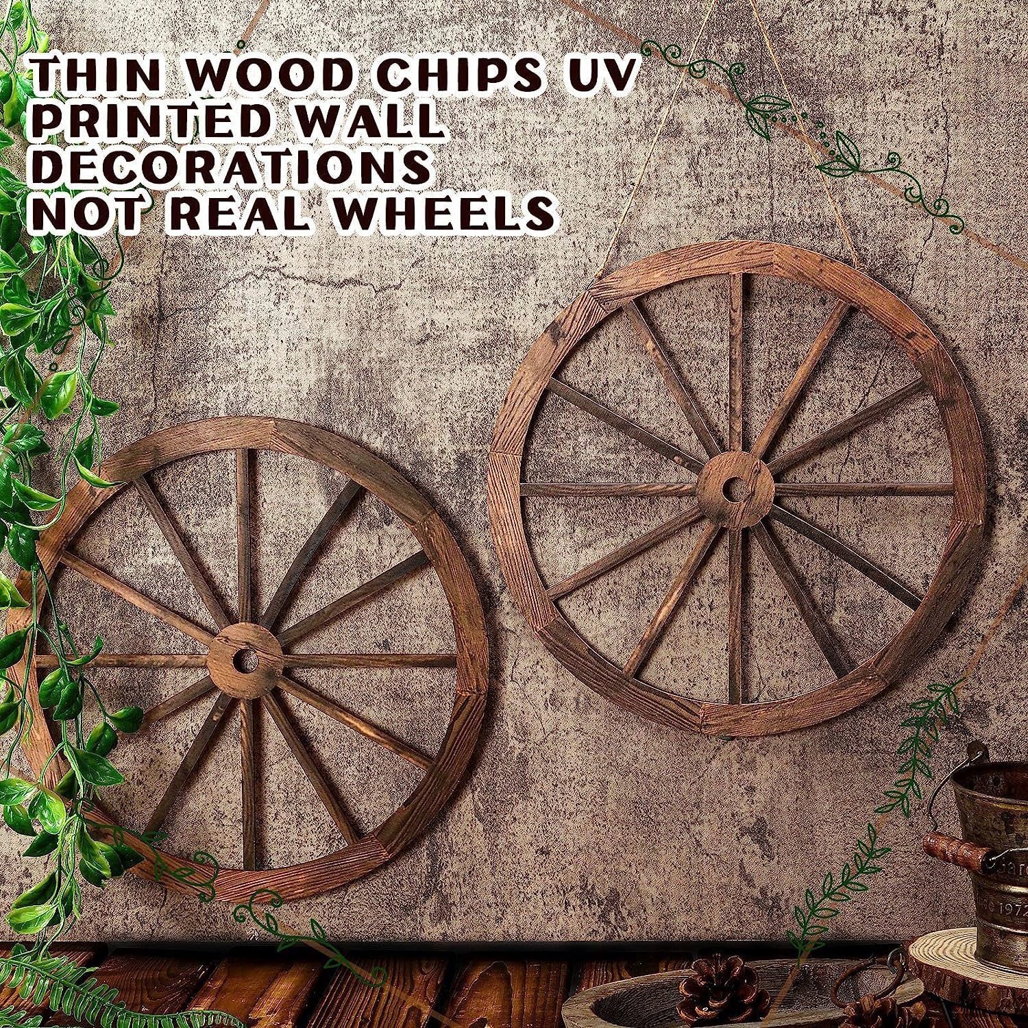 3ピース木の四輪車の壁飾り12/10/8インチ旧西部木四輪壁アート農舎四輪車