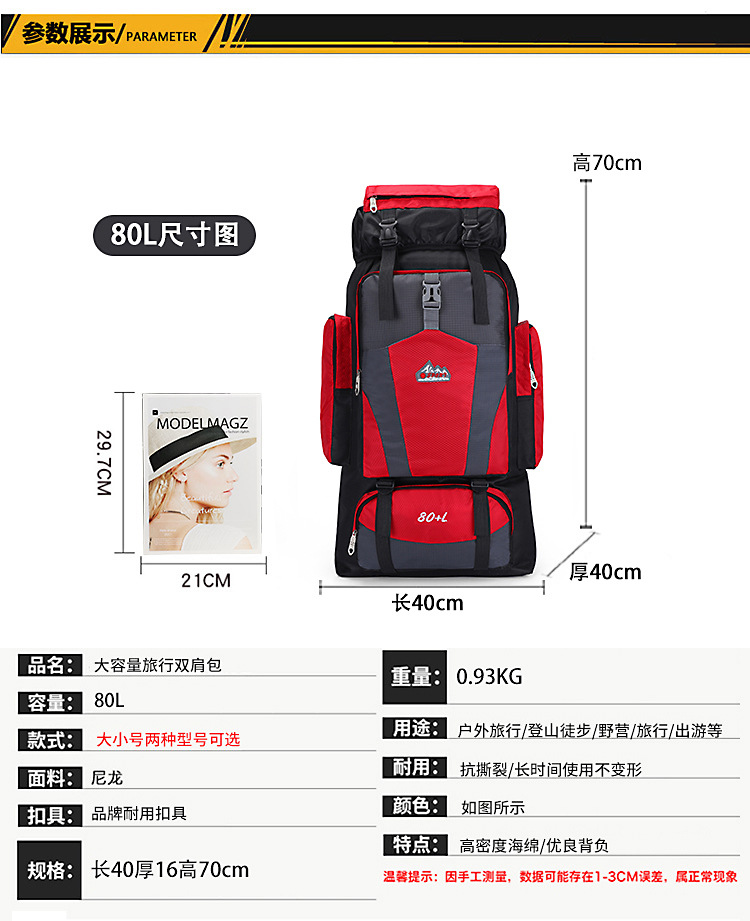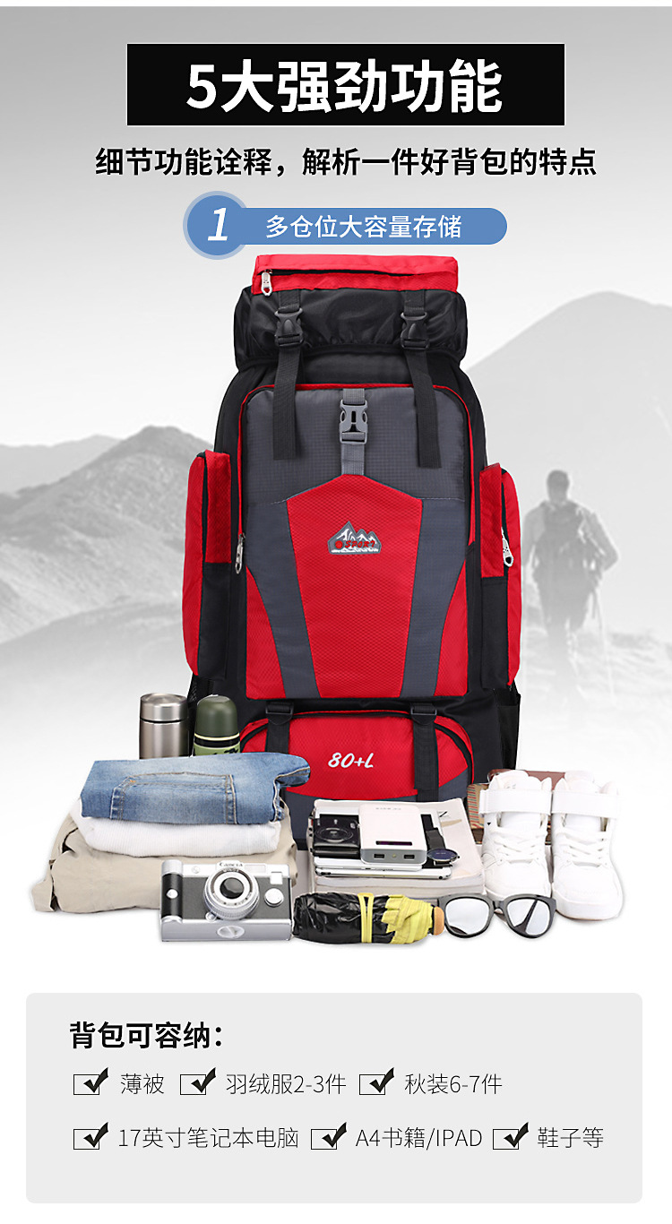 代理80l超大容量クロスボーダー大リュックサック長距離旅行荷物バッグ徒歩登山バッグ