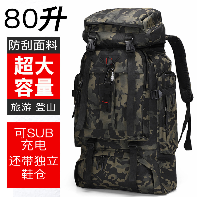 80L牛津布户外背包迷彩徒步战术双肩包登山包男士露营旅行背包