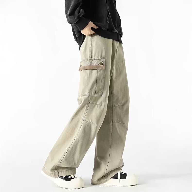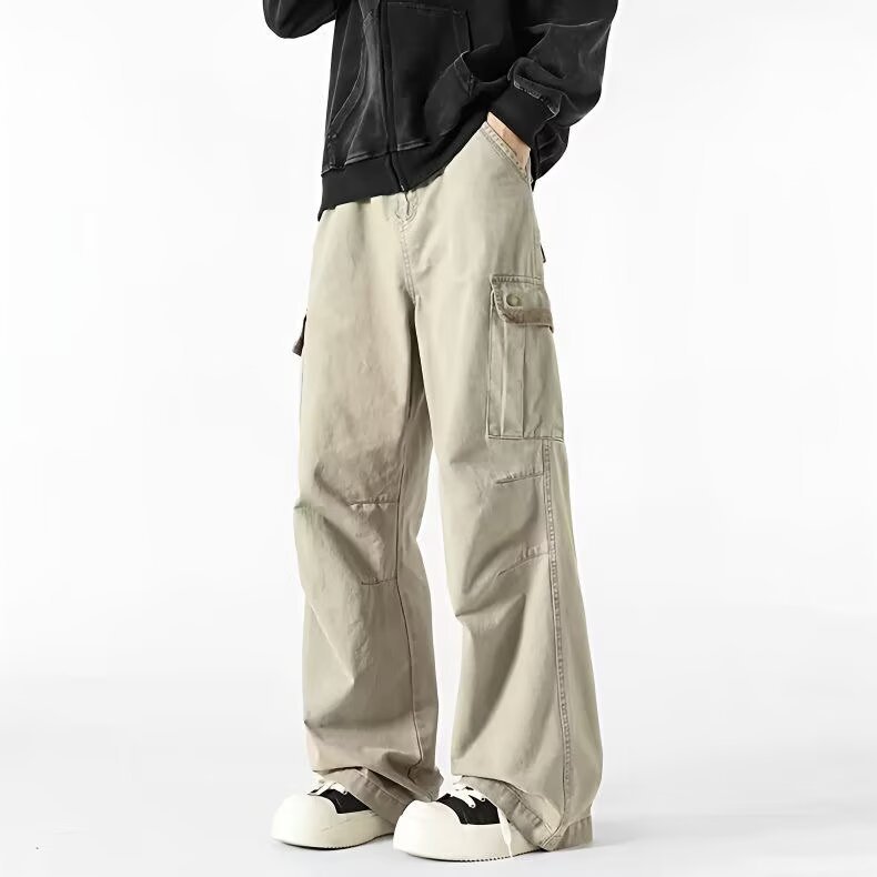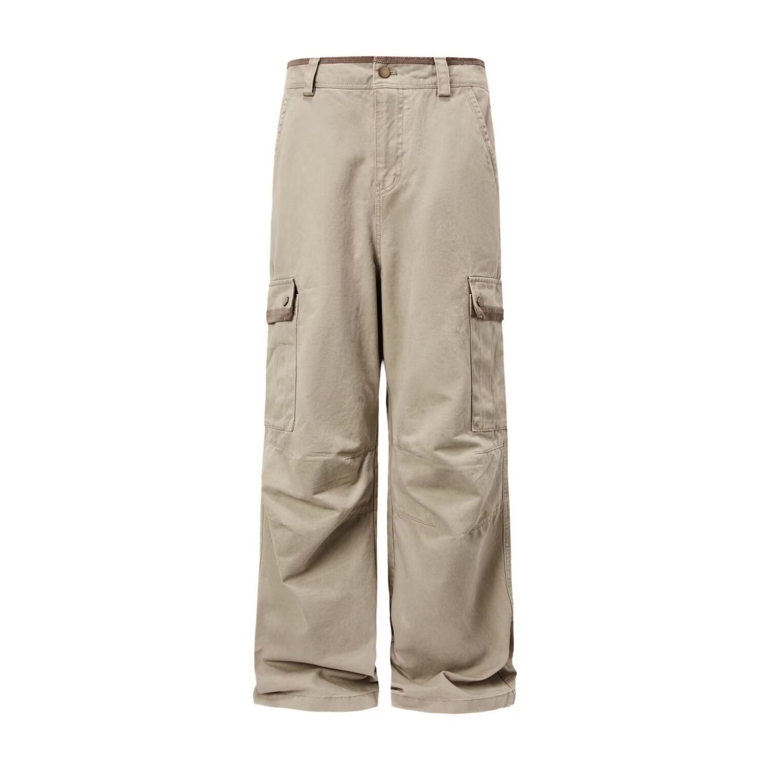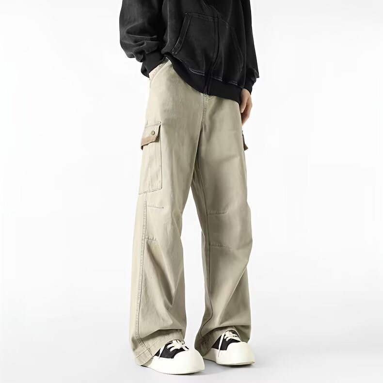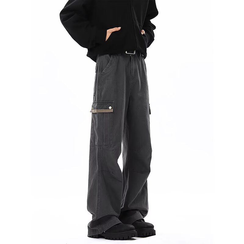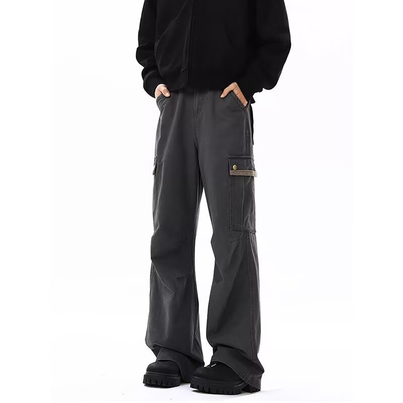2025 レトロウォッシュ加工マルチポケットワークジーンズメンズルーズカジュアルストレートパンツ