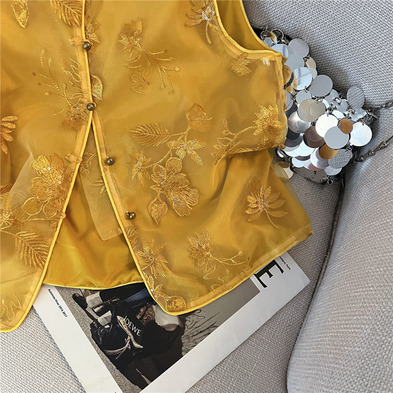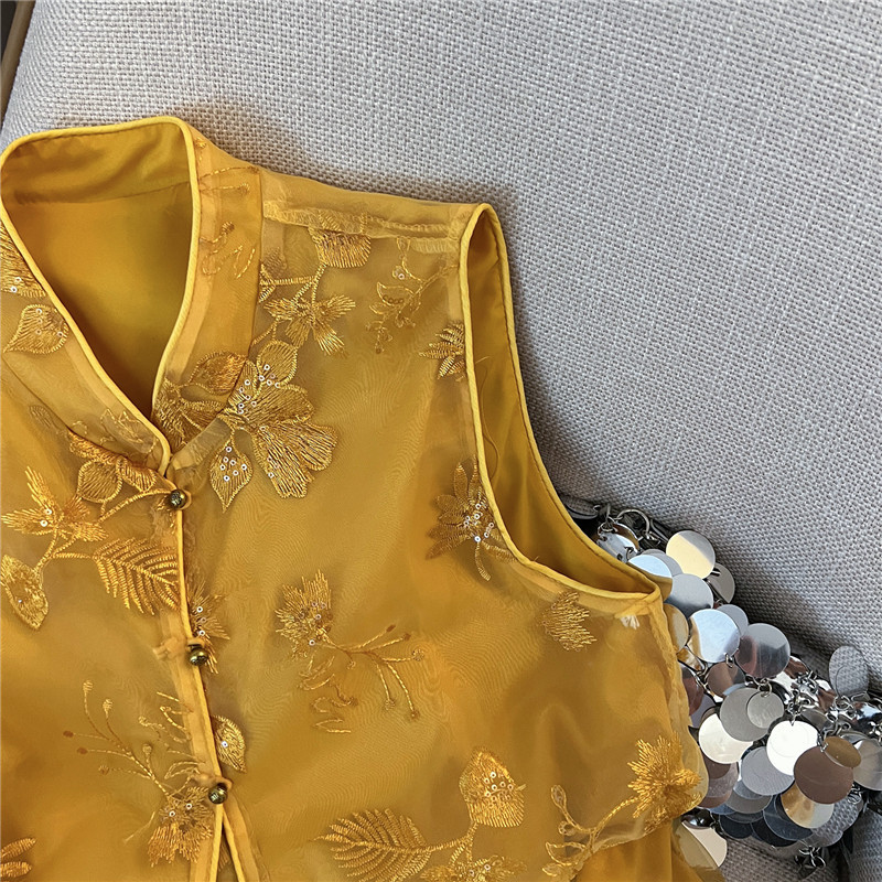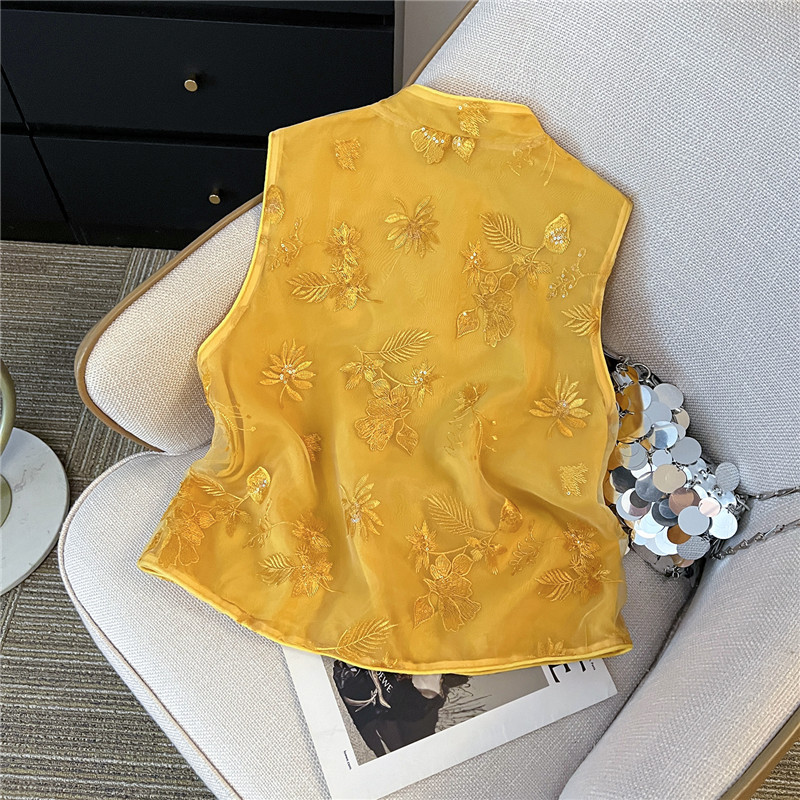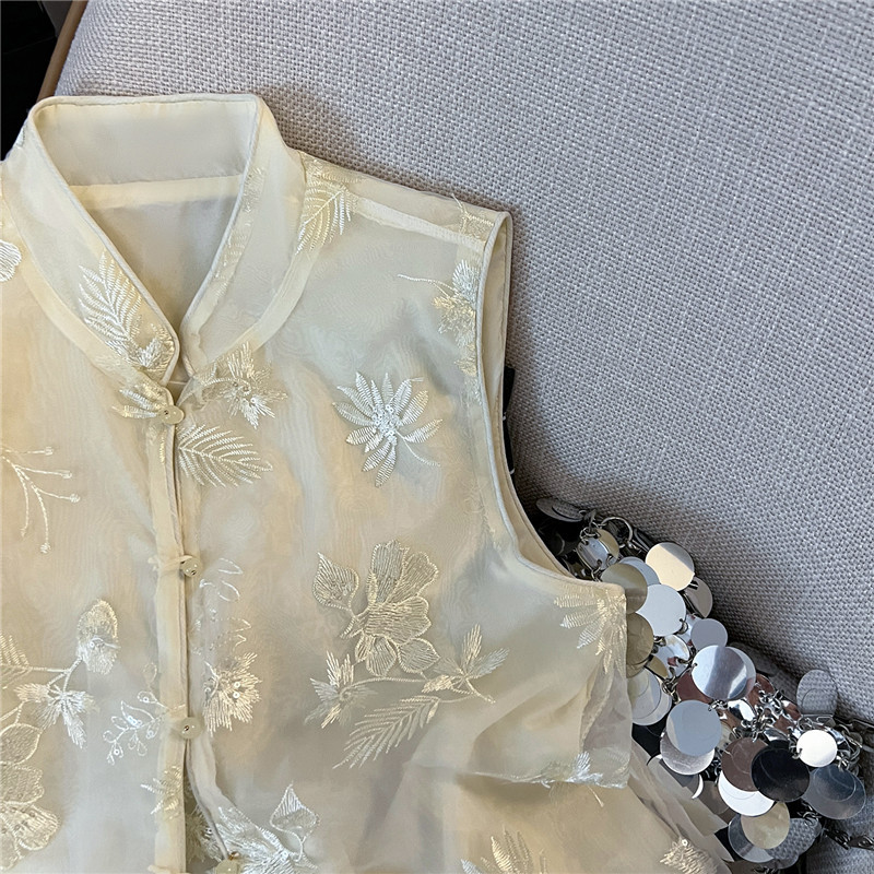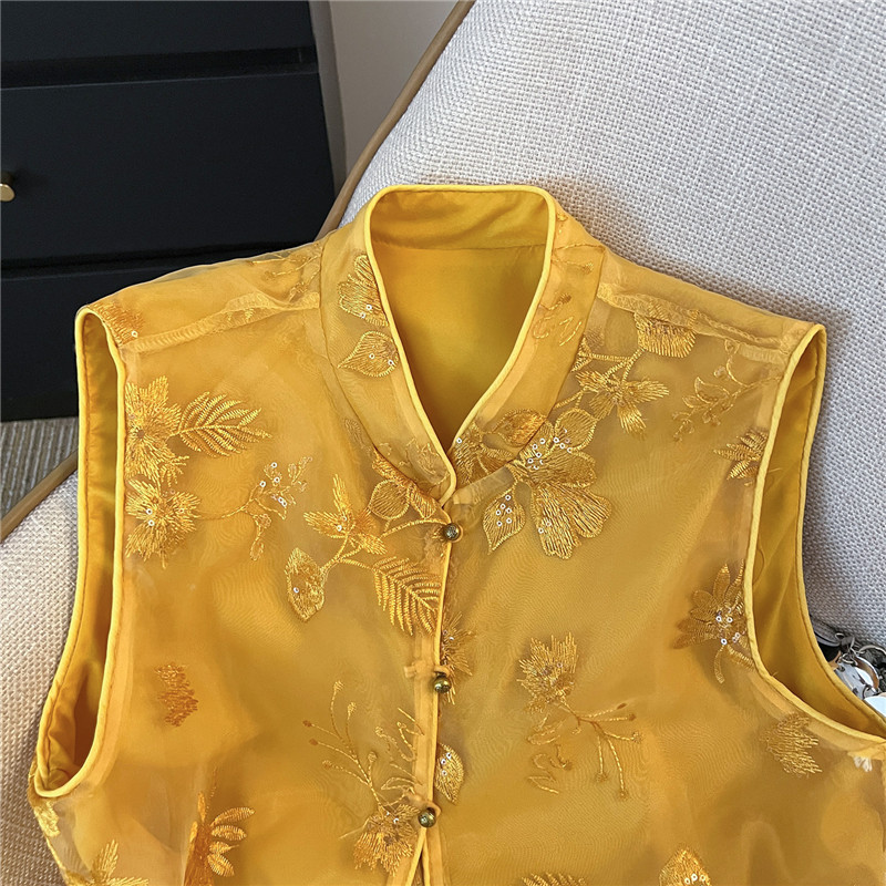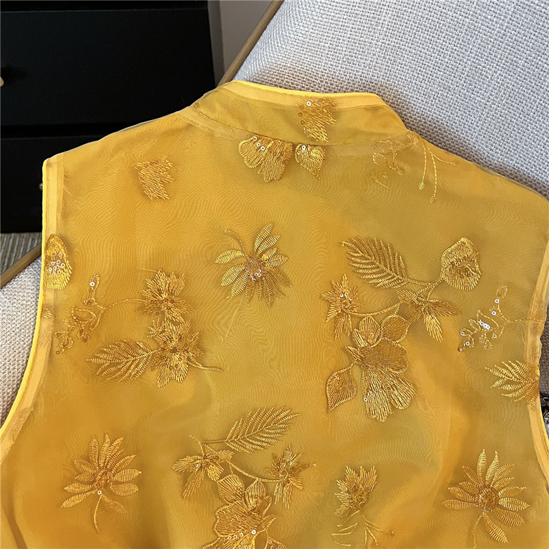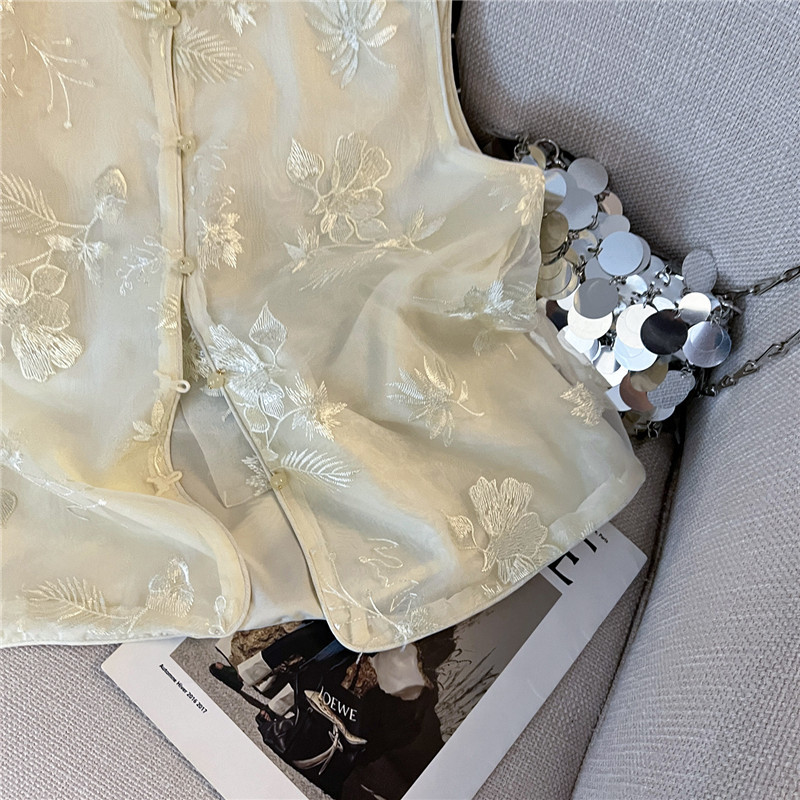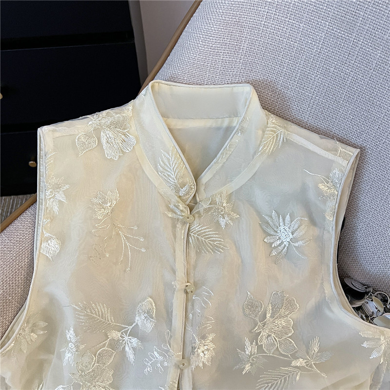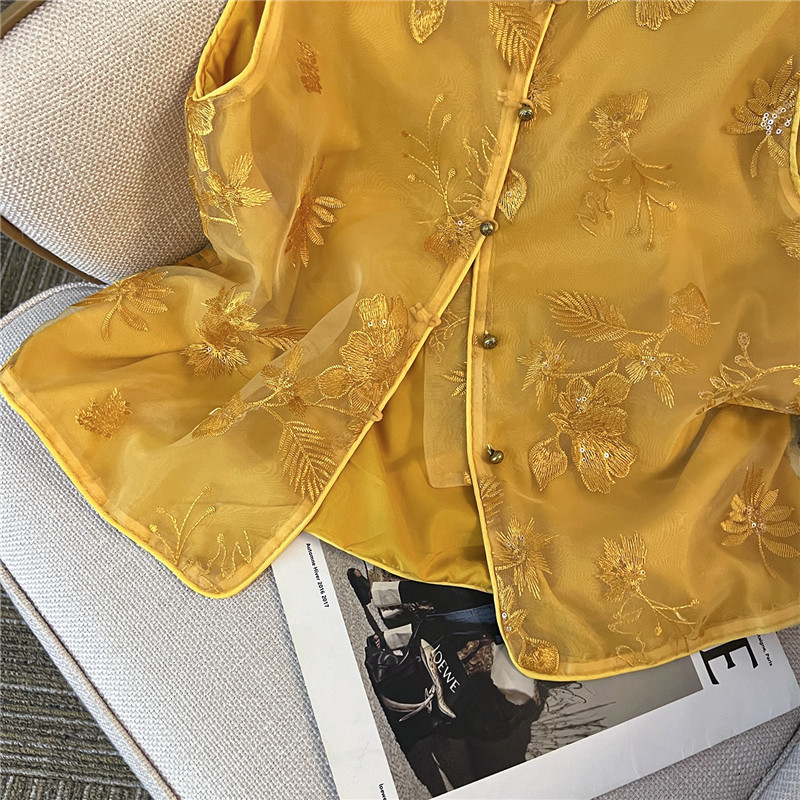 Mnfs 9619新中国風刺繍サテン立襟コート女性レトロ高級感雰囲気禅意薄上着