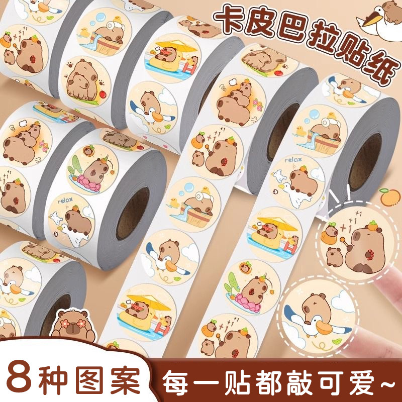 创意贴纸卡皮巴拉卷卷贴儿童手账DIY可爱造型不干胶贴全班奖品