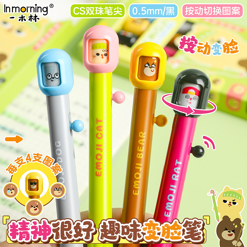 趣味变脸笔按动式中性笔学生高颜值解压刷题笔CS头速干顺滑签字笔