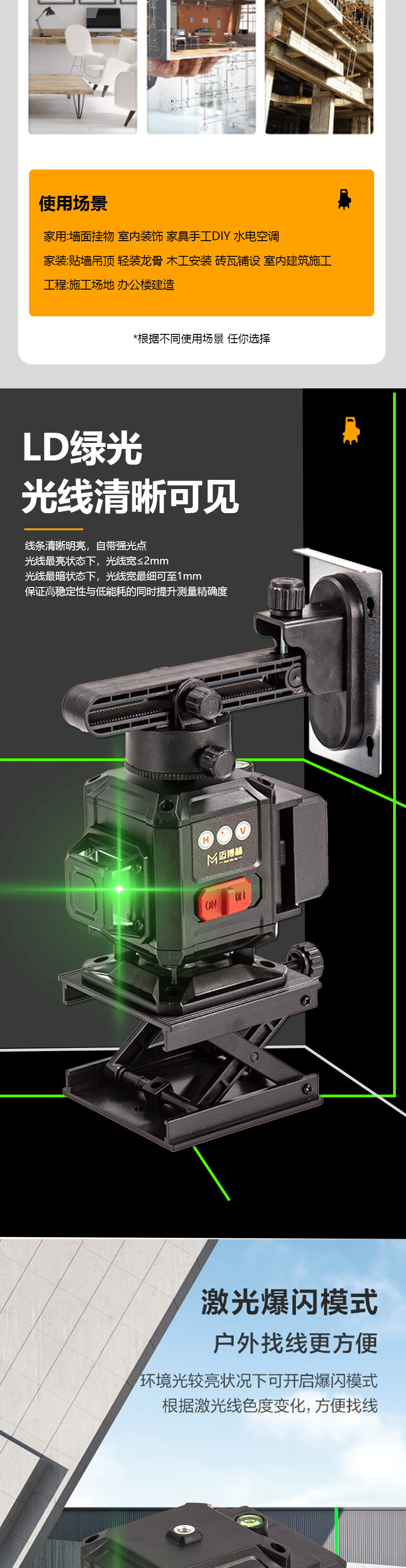 Yilong 2024 強力な光新しいレベルメーター 12 ライン水平赤外線グリーンライトスクレーパー大型白高精度天井
