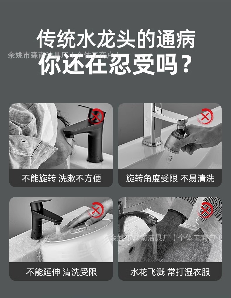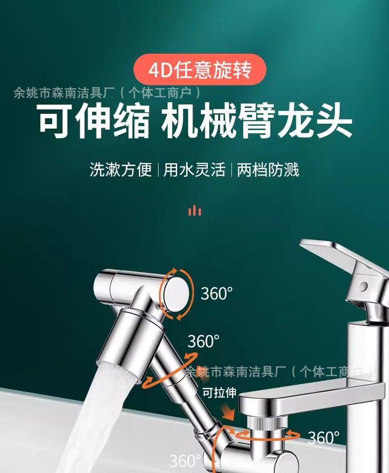 跨境厂家批发万向水龙头旋转出水延伸水嘴起泡器防溅水龙头机械臂