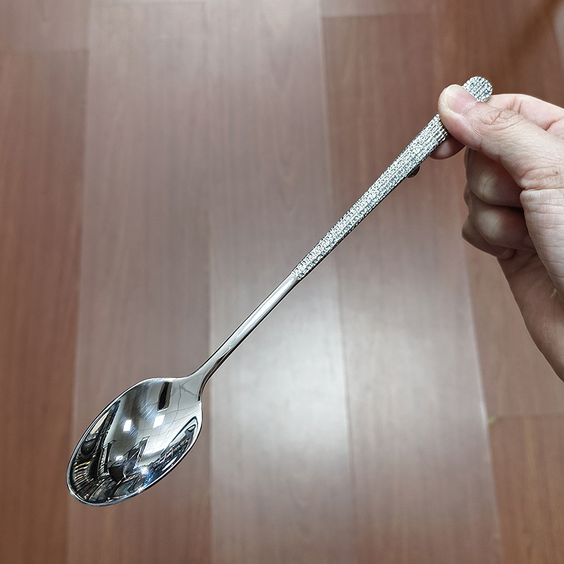 304不锈钢带珠优雅钻纹冰勺 多用长柄小尖勺调酒勺奶茶咖啡搅拌勺