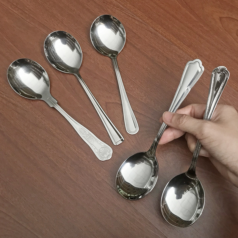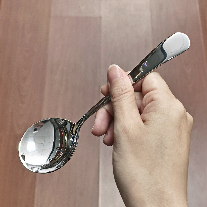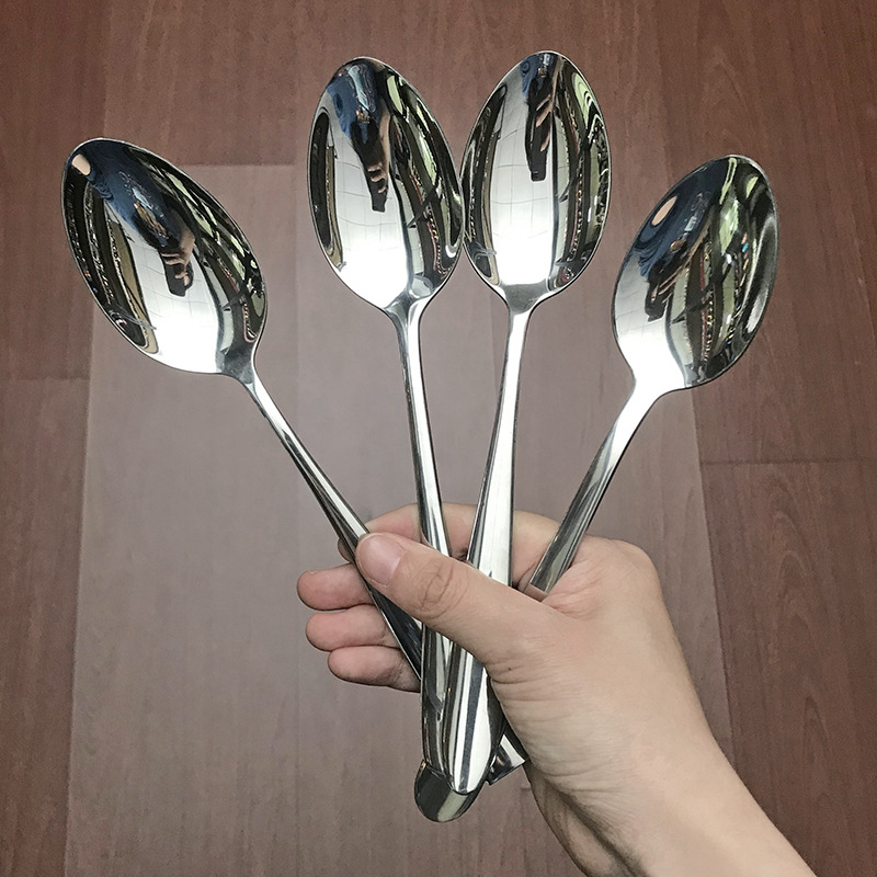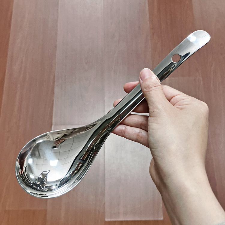 ステンレスの丸いスプーンは家庭で食事をしてご飯のスプーンを混ぜてスプーンを飲みます。